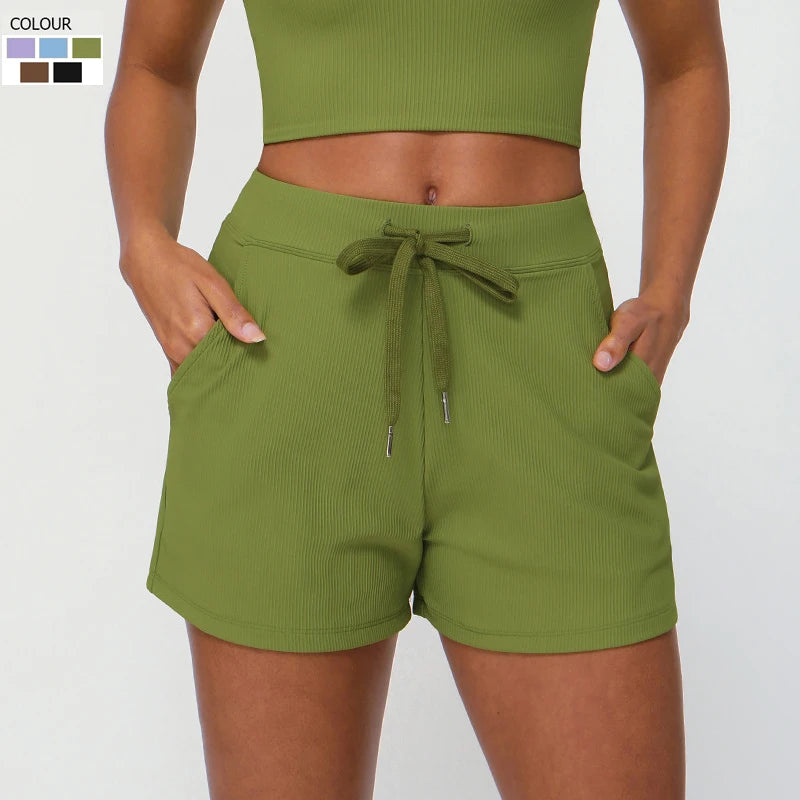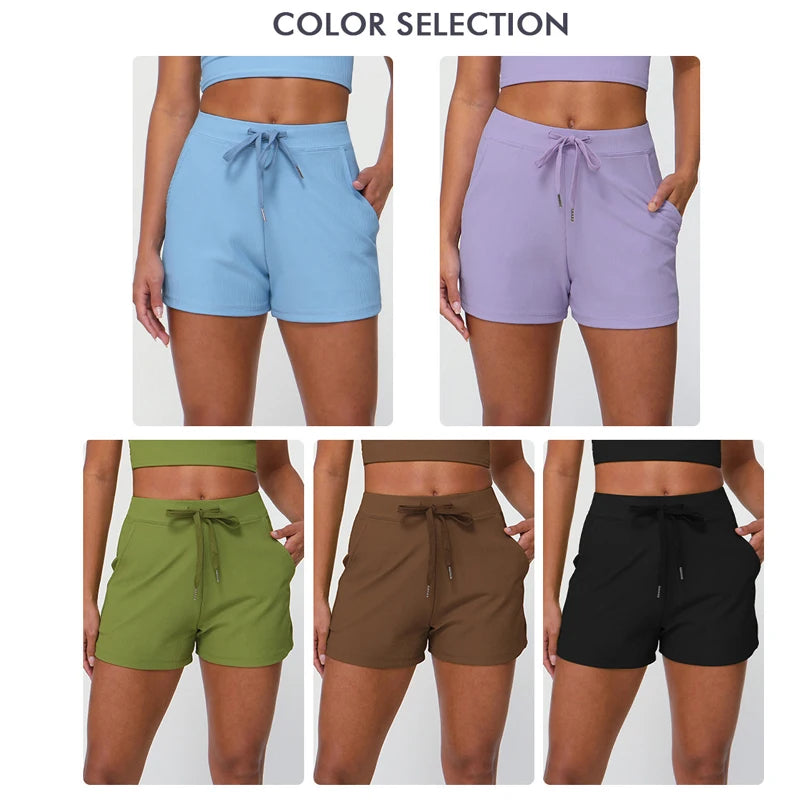 Women's Running High Waist Pocket Gym Shorts Breathable Quick Dry Workout Shorts Sportswear