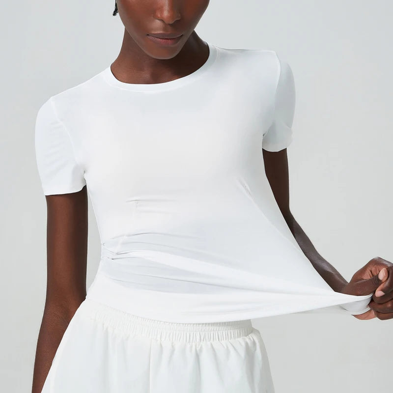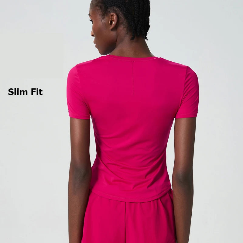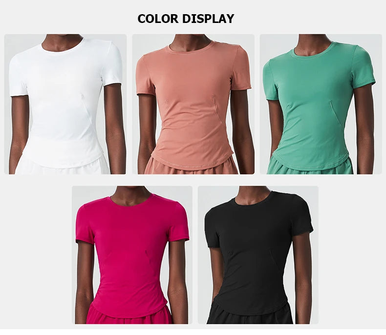 Women's Short Sleeve Yoga Slim Fit Gym Running Shirt Breathable Quick Dry Workout Sportswear Top