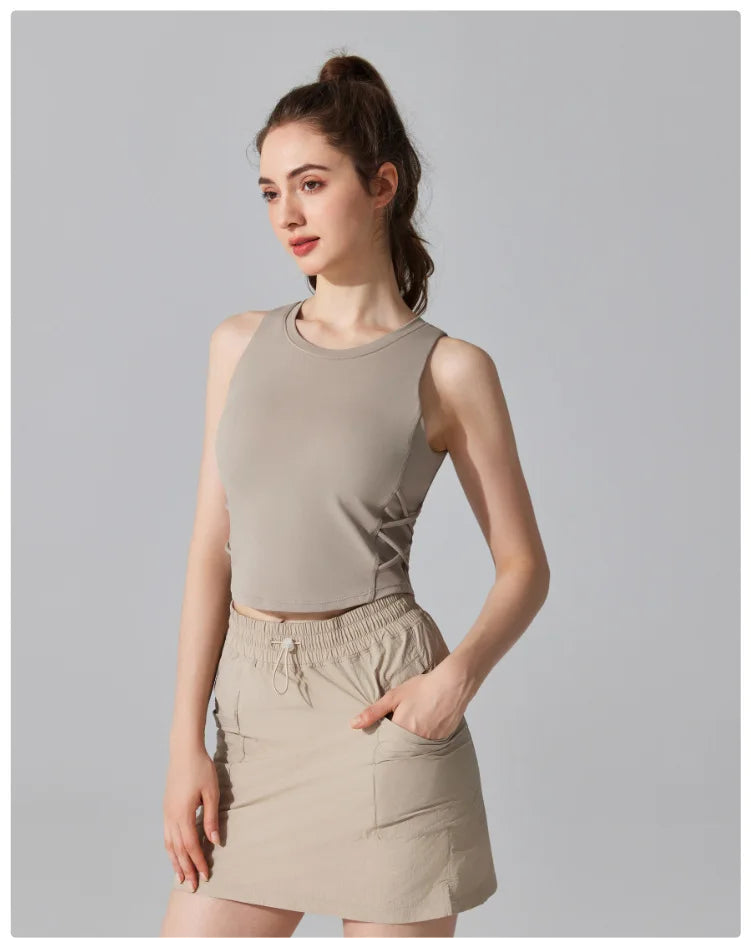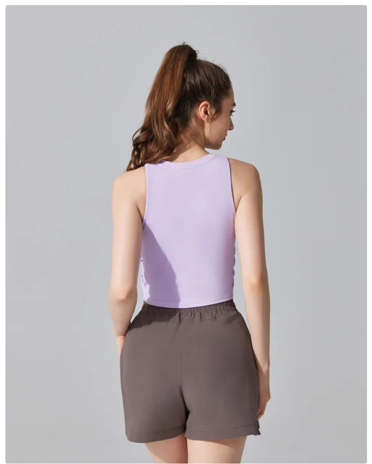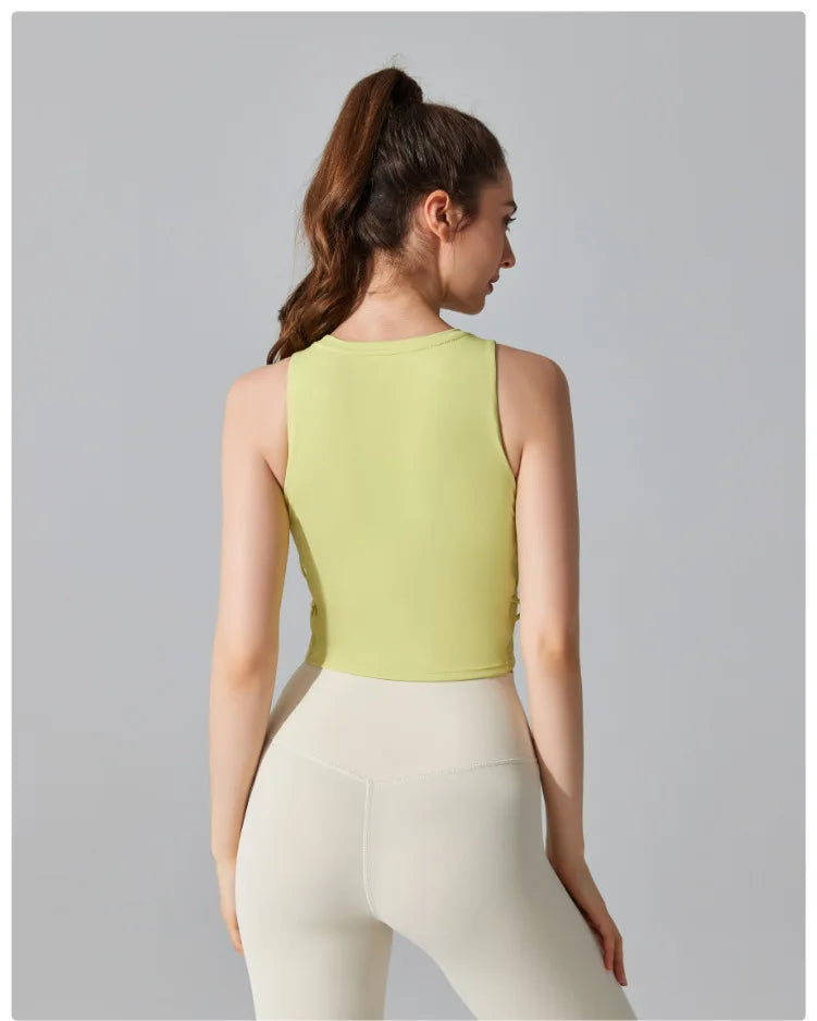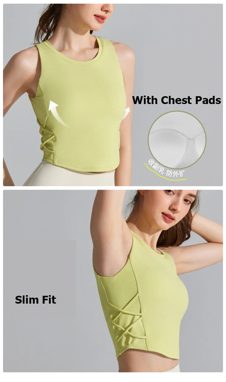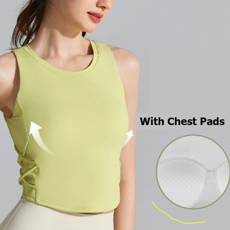 Women's Sleeveless Yoga Top Slim Fit Gym Running Vest Breathable Quick Dry Workout Top With Chest Pads Sportswear