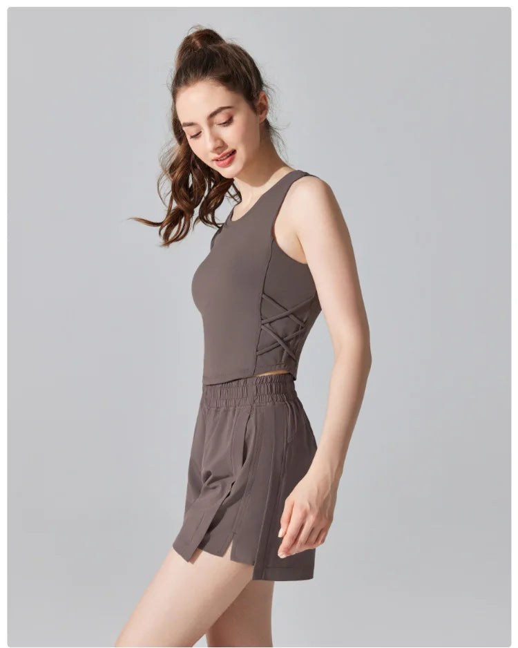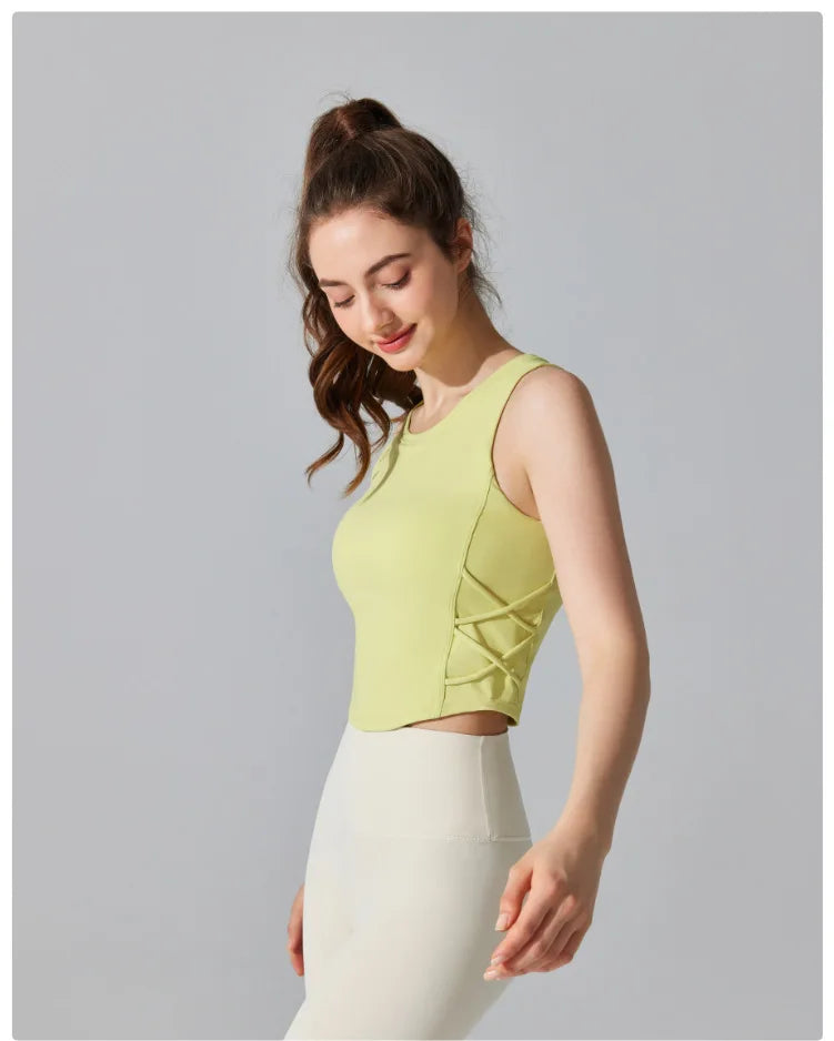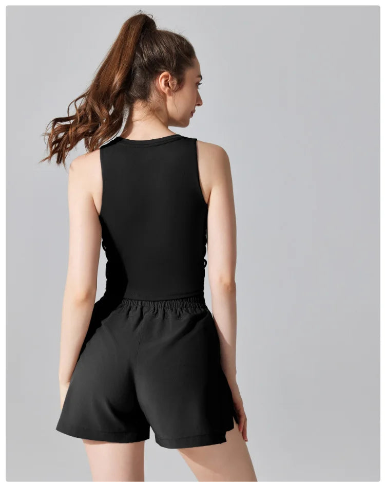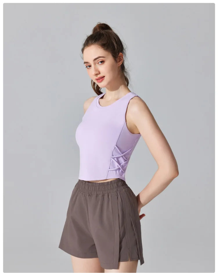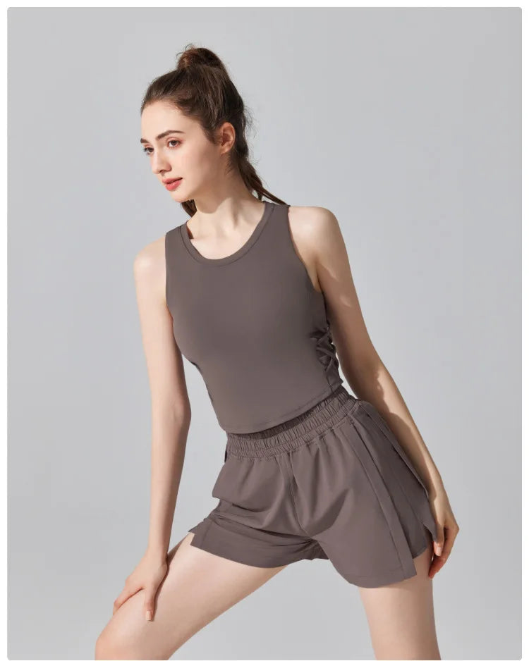 Women's Sleeveless Yoga Top Slim Fit Gym Running Vest Breathable Quick Dry Workout Top With Chest Pads Sportswear