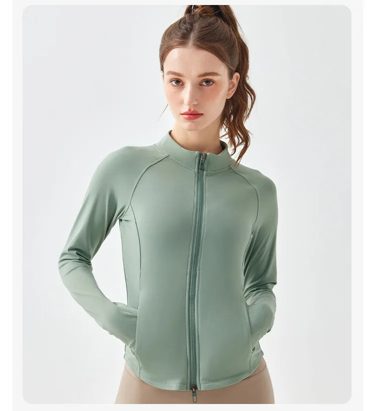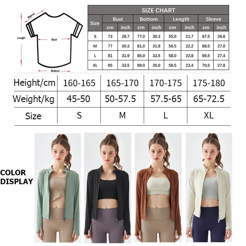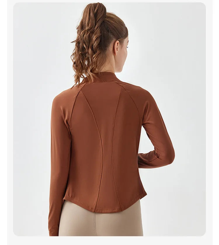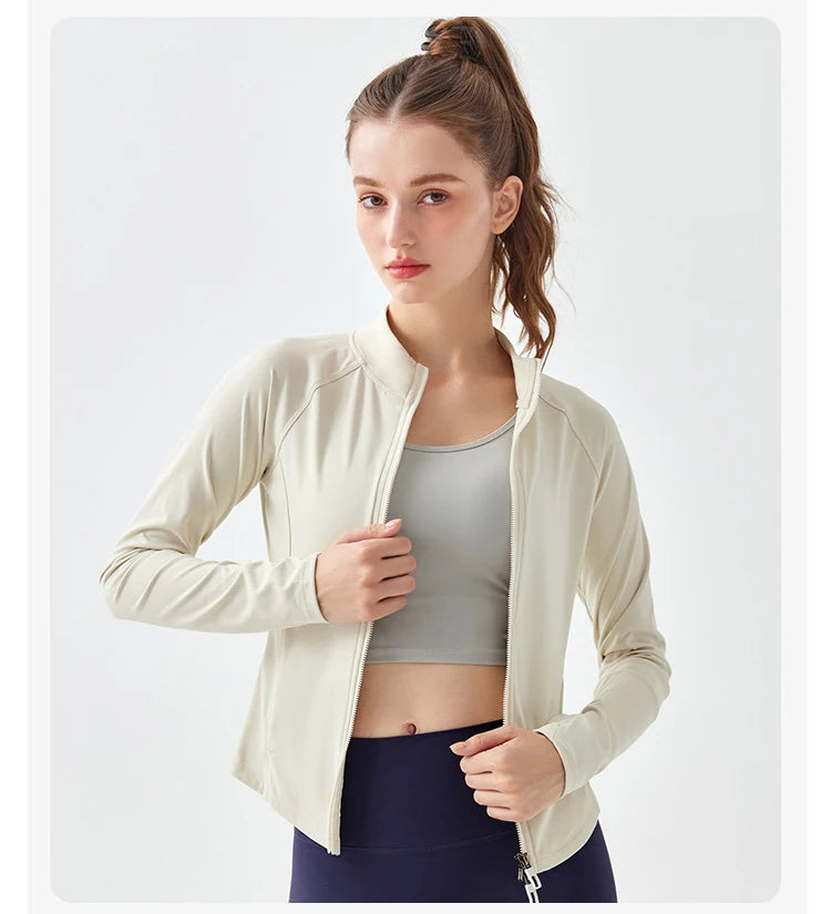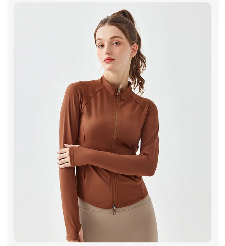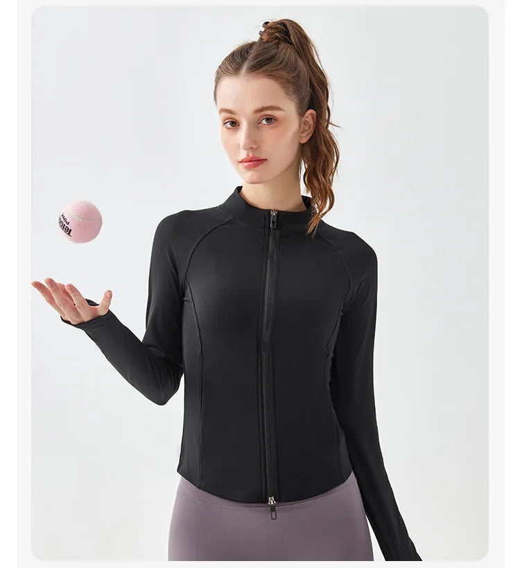 Women's Slim Fit Running Jacket Solid Color Long Sleeve Yoga Top Super Stretch Breathable Workout Coat Gym Sportswear