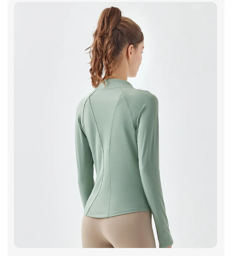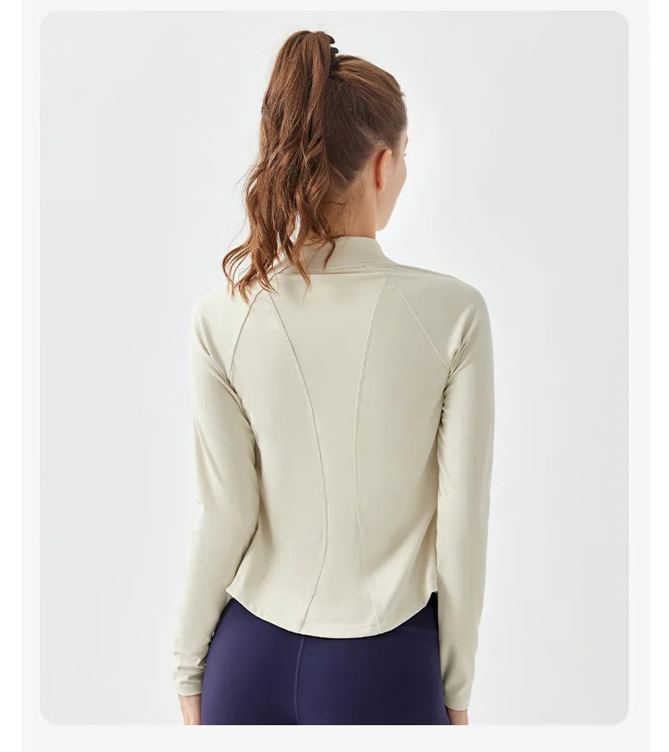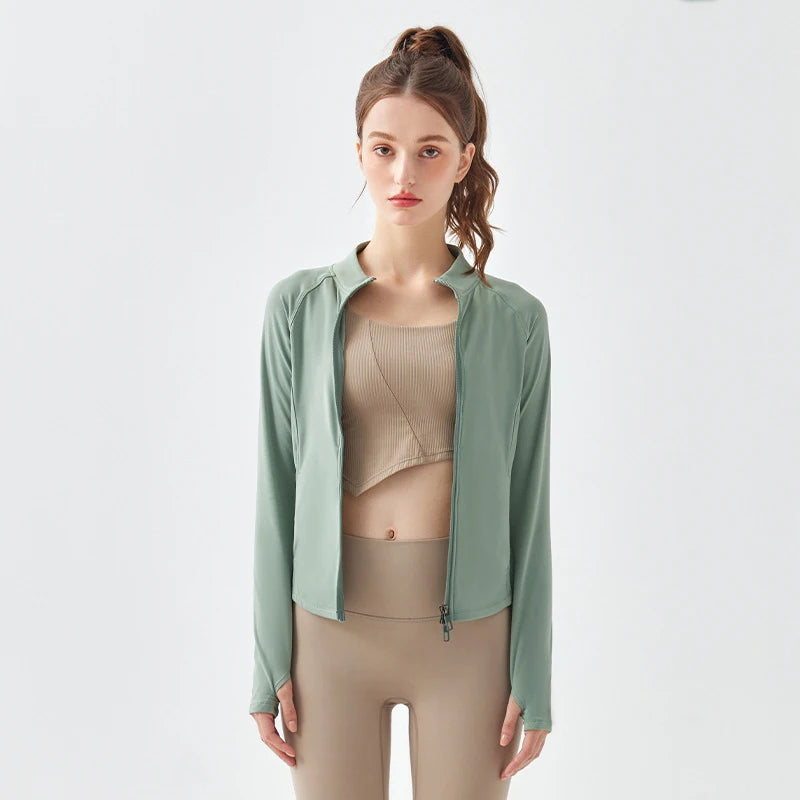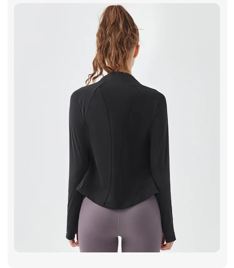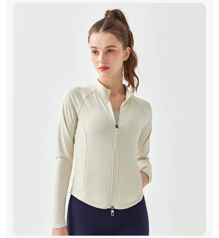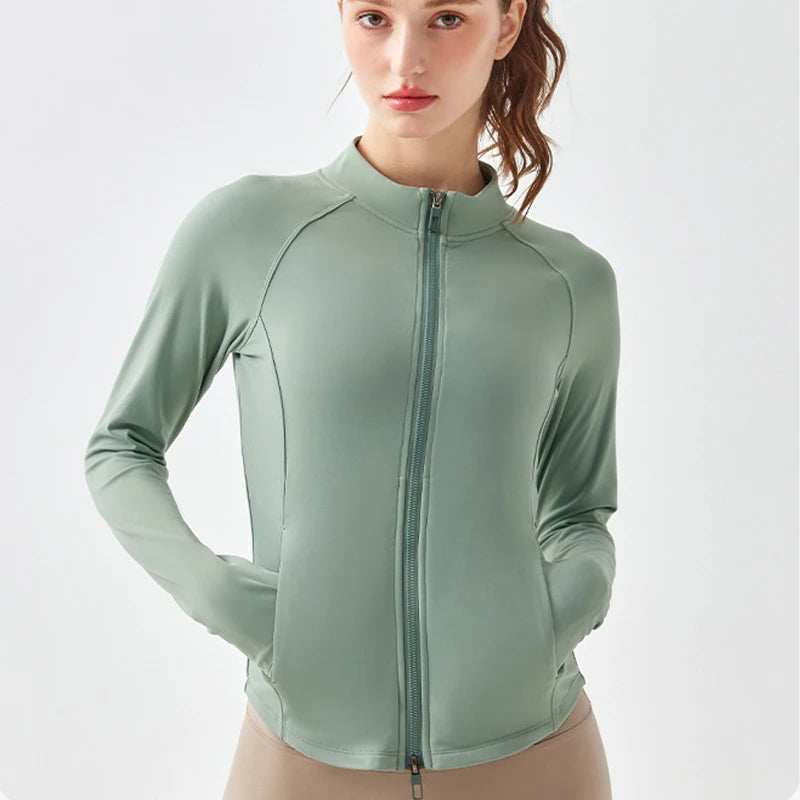 Women's Slim Fit Running Jacket Solid Color Long Sleeve Yoga Top Super Stretch Breathable Workout Coat Gym Sportswear