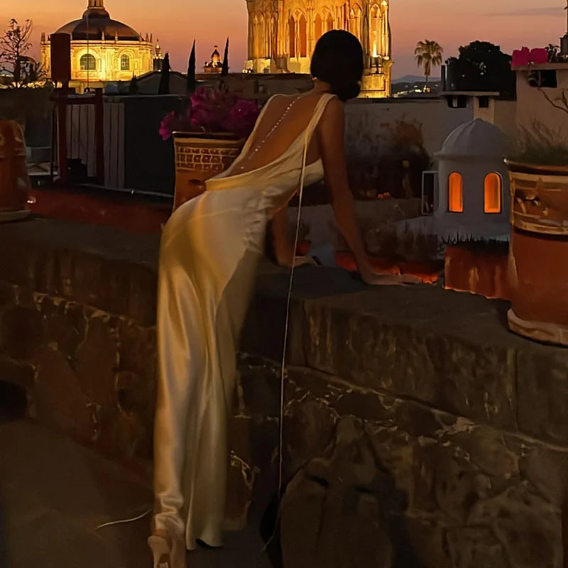 Women's Spaghetti Strap Backless Satin Slip Maxi Sleeveless Gown Long Dress