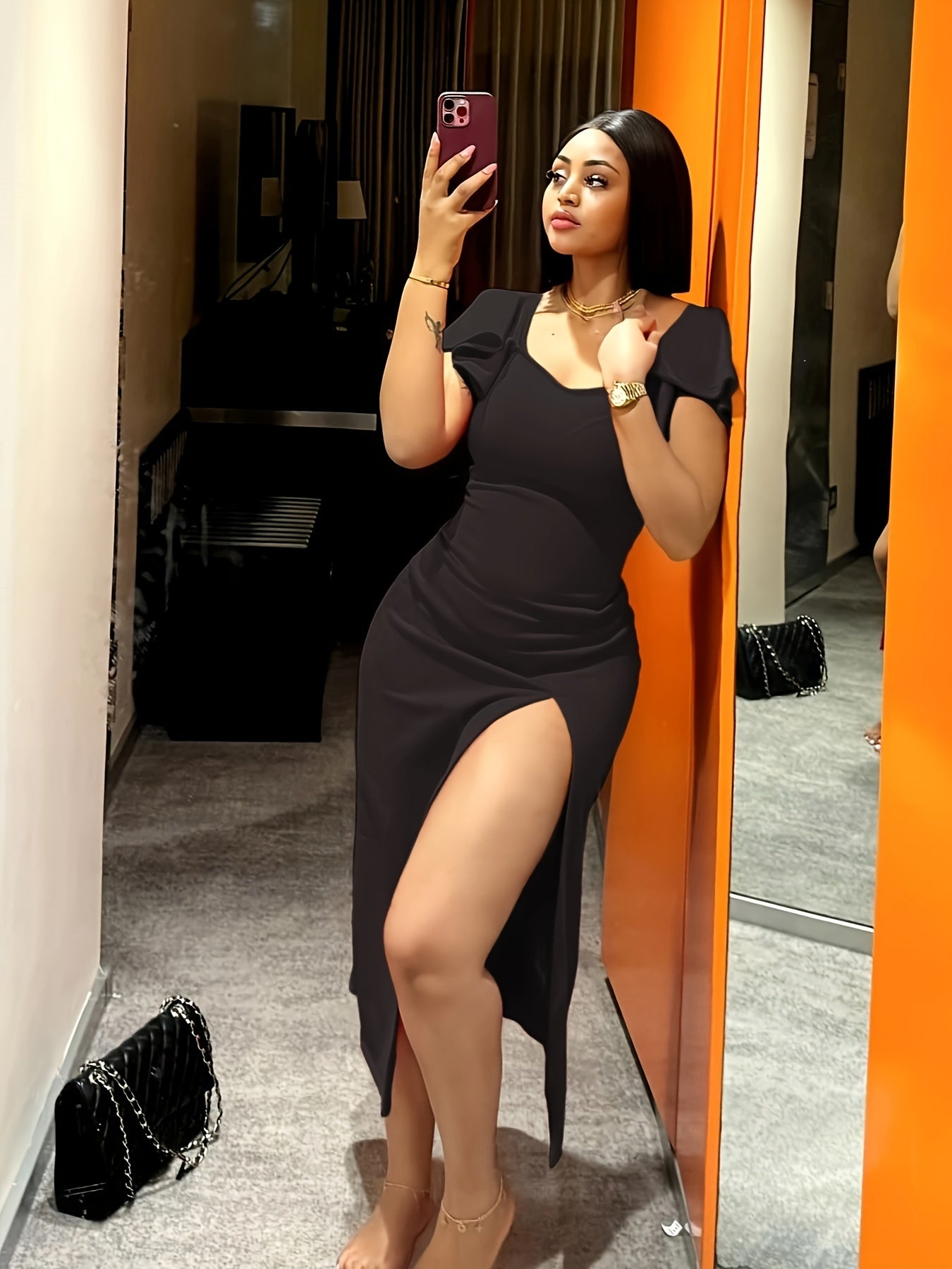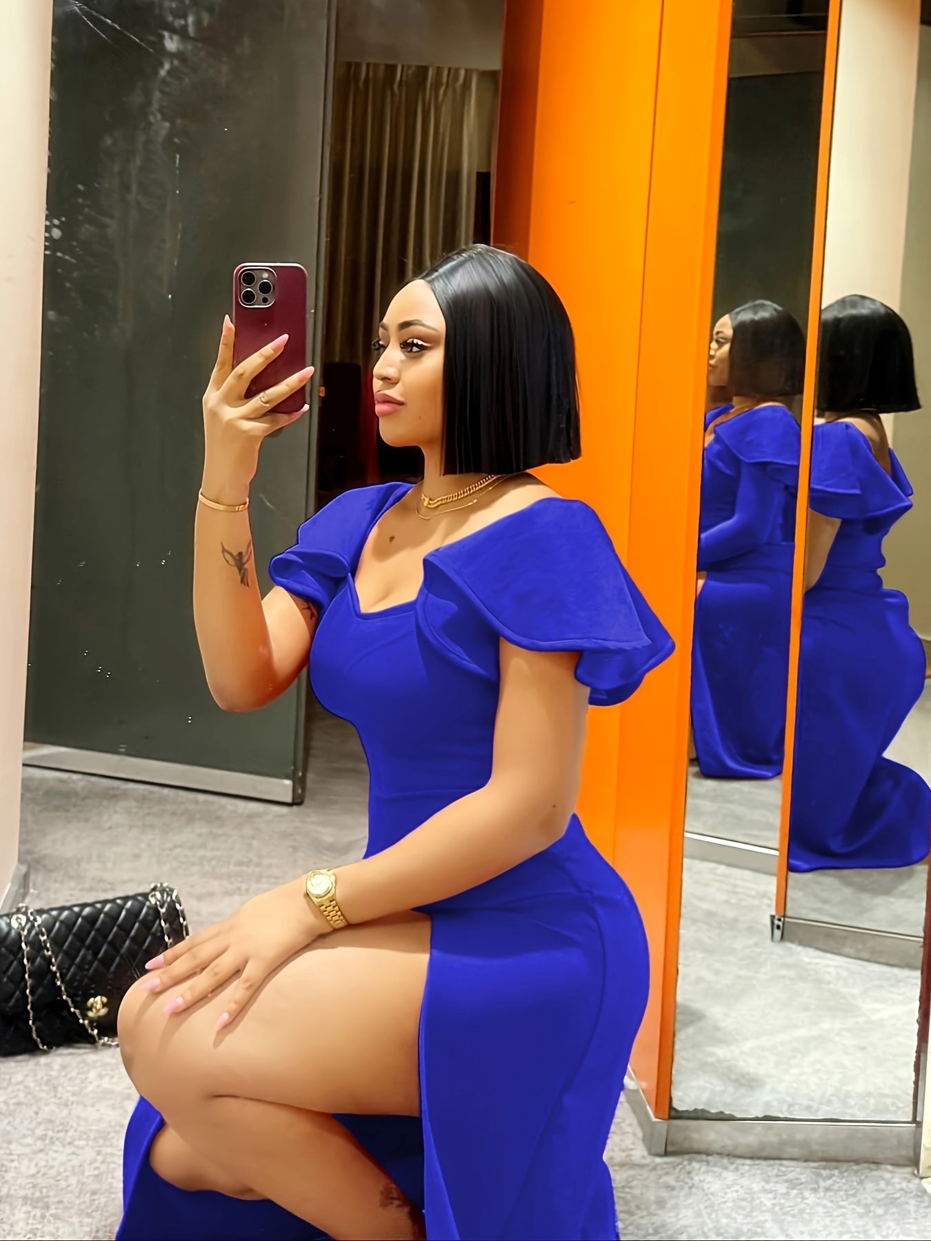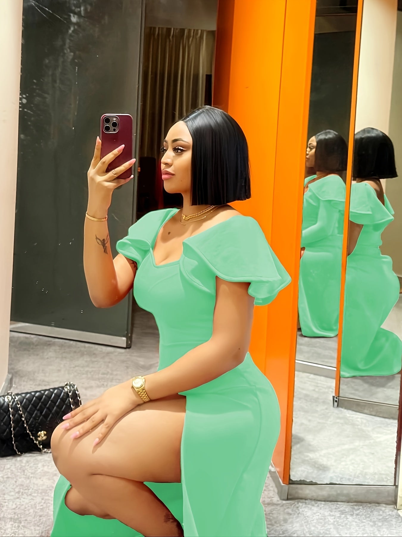 Women's Split Hem Bodycon Flutter Sleeve V Neck Slim Dress