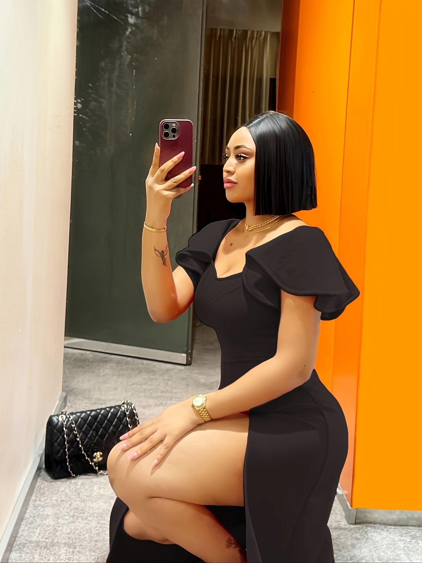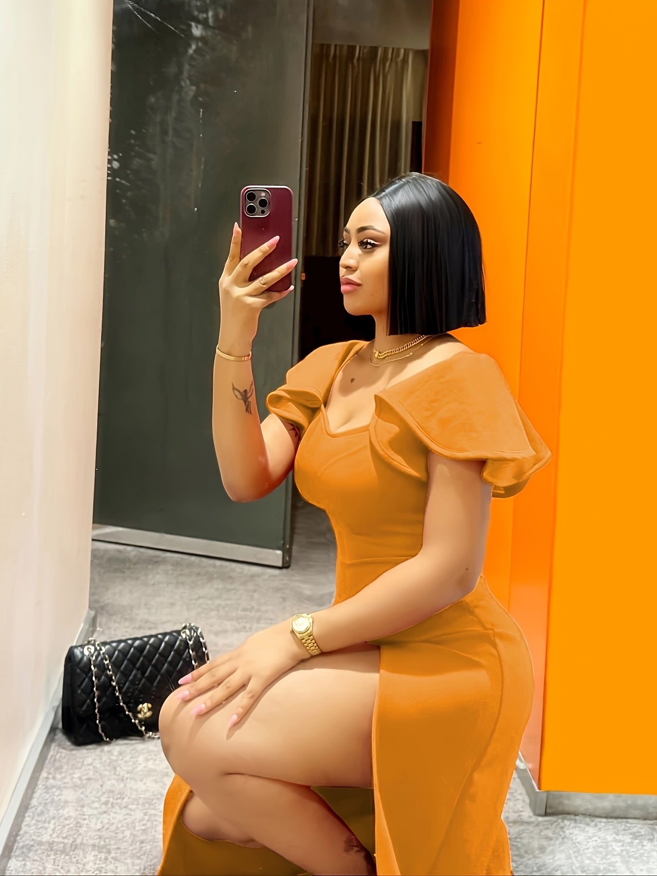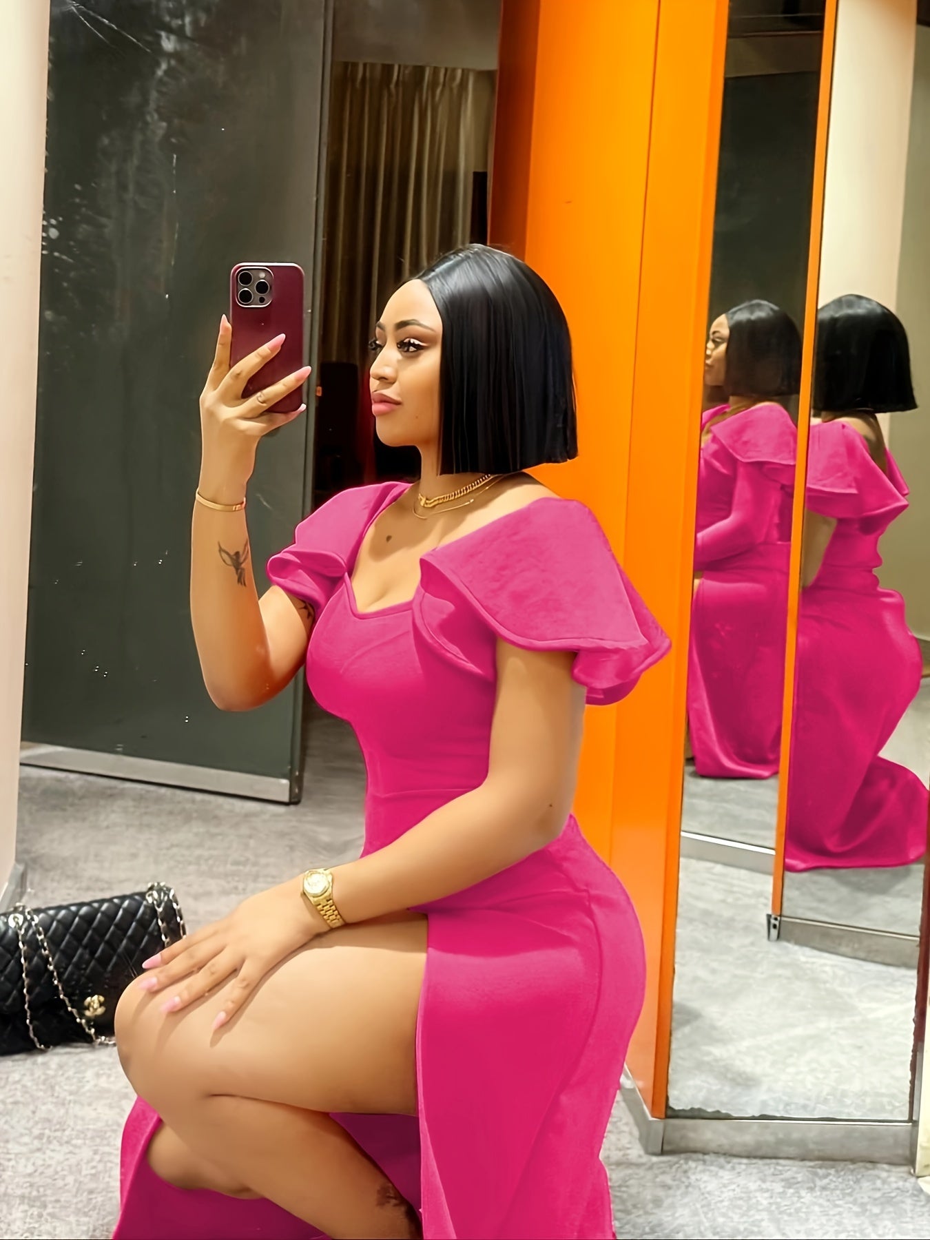 Women's Split Hem Bodycon Flutter Sleeve V Neck Slim Dress