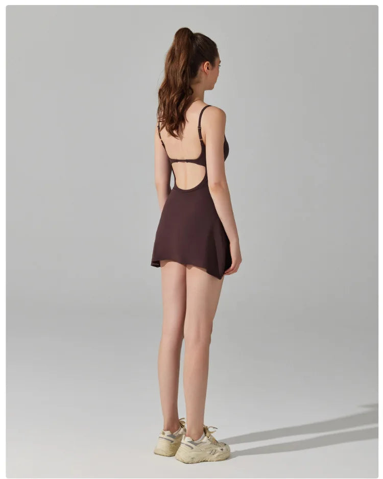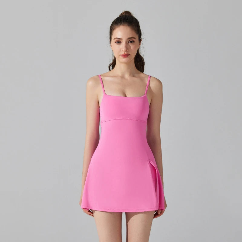 Women's Sports One Piece Yoga Suit Breathable Quick Dry Short Sportswear Female Workout Tennis Dress