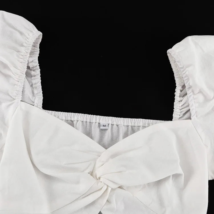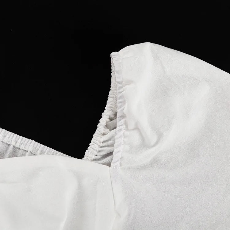 Women's Square Collar Puff Sleeve Long Slim A-Line Twist Hollow Out Cotton Elegant Dress