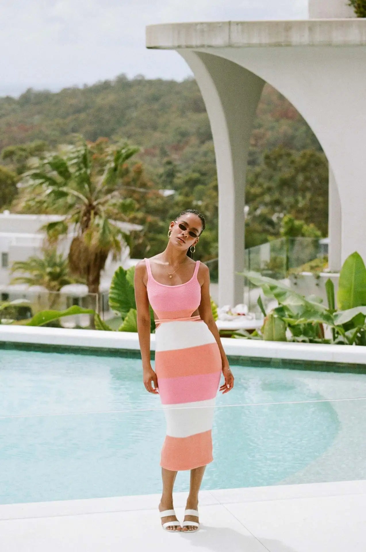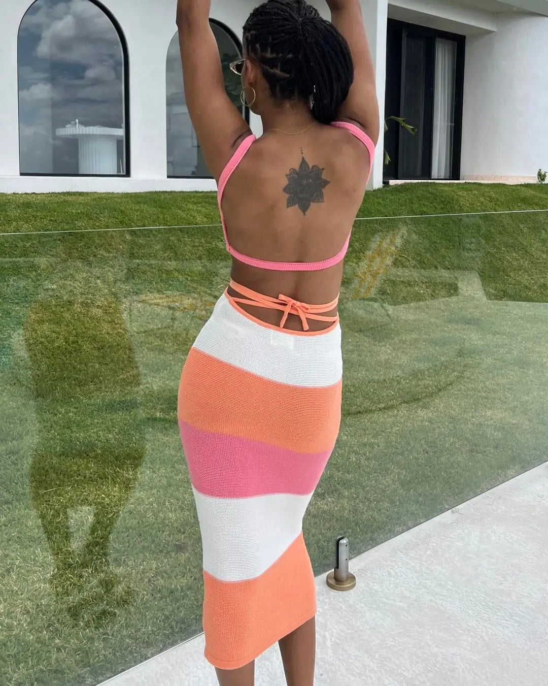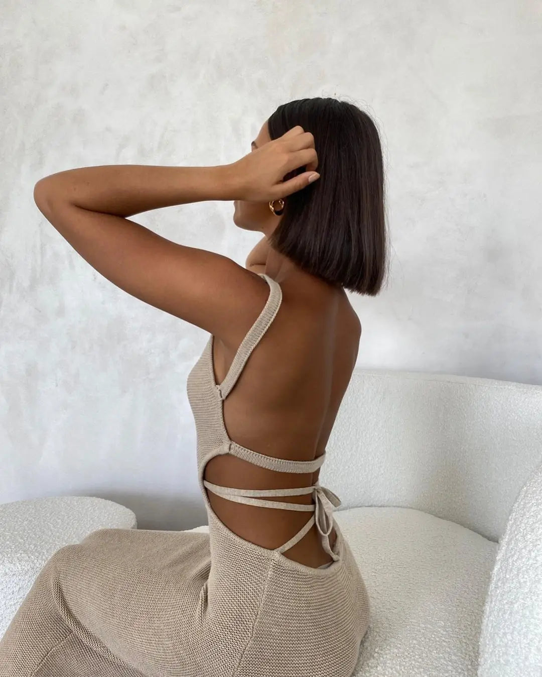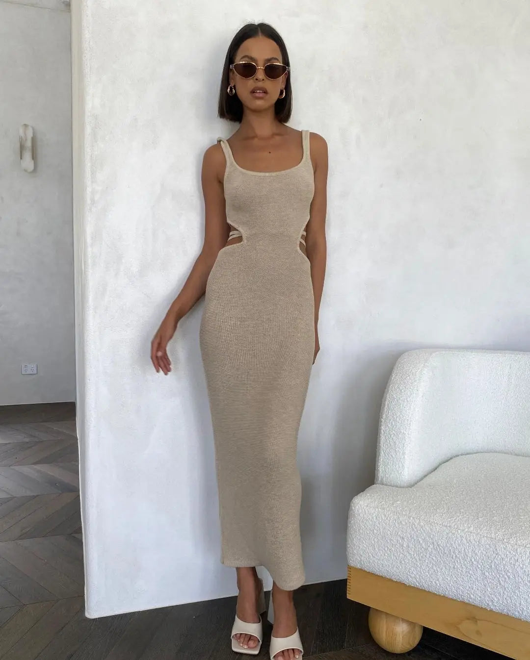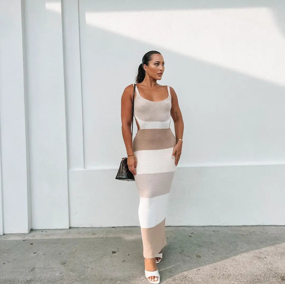 Women's Straps Backless Knit Maxi Dress - Beach Cut Out Shift Dress
