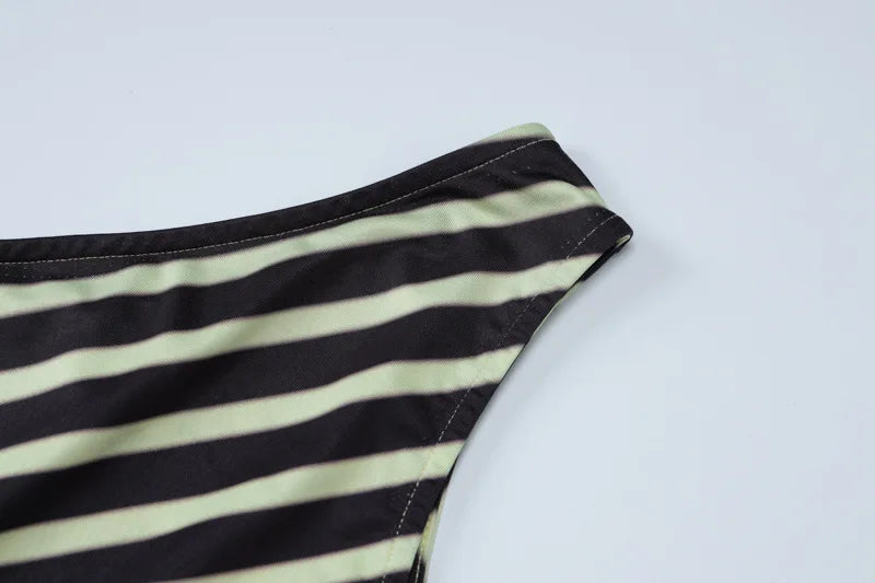 Women's Striped Asymmetrical Elegant Skirt Set 2 Piece Cropped Top and Skirt Matching Set