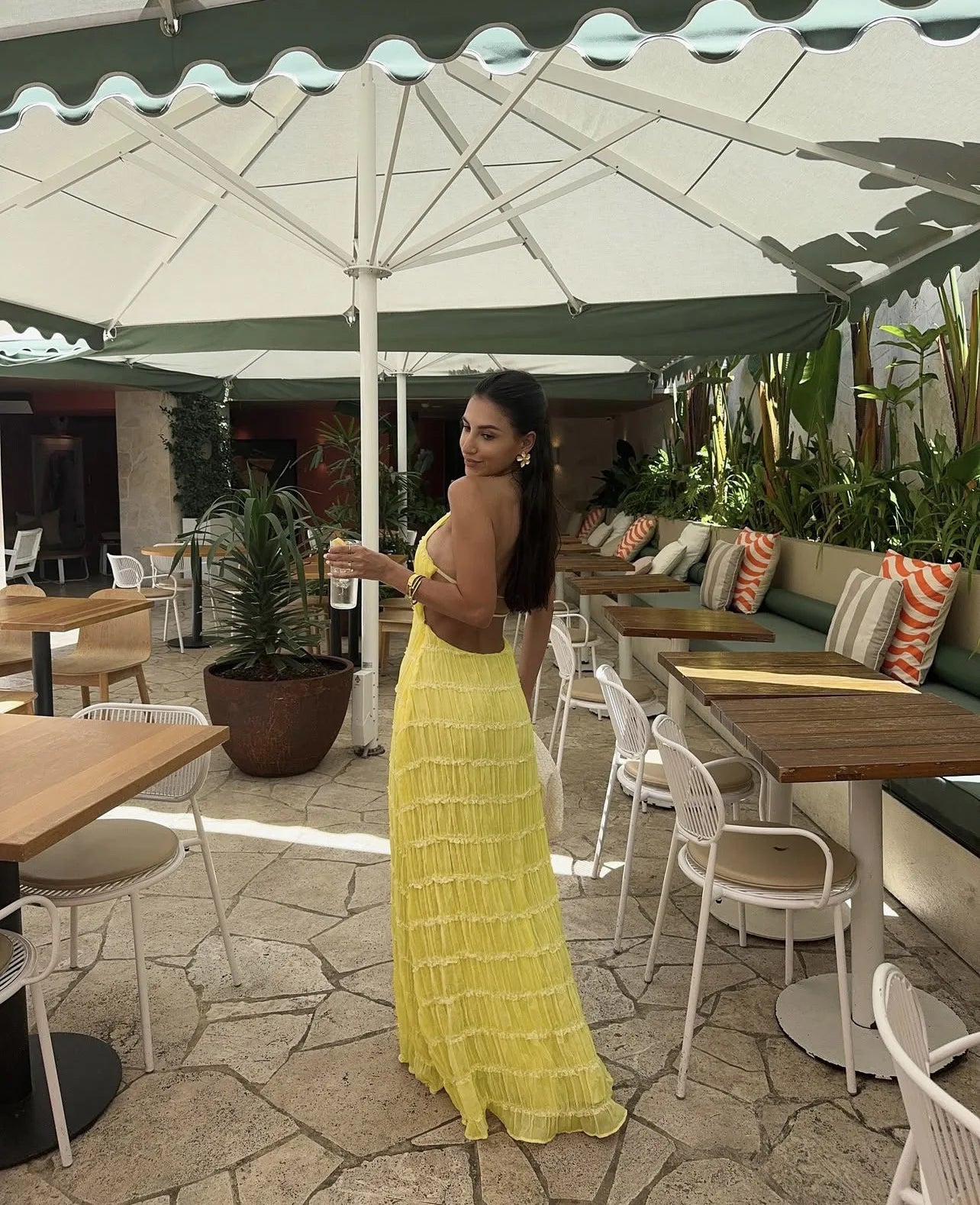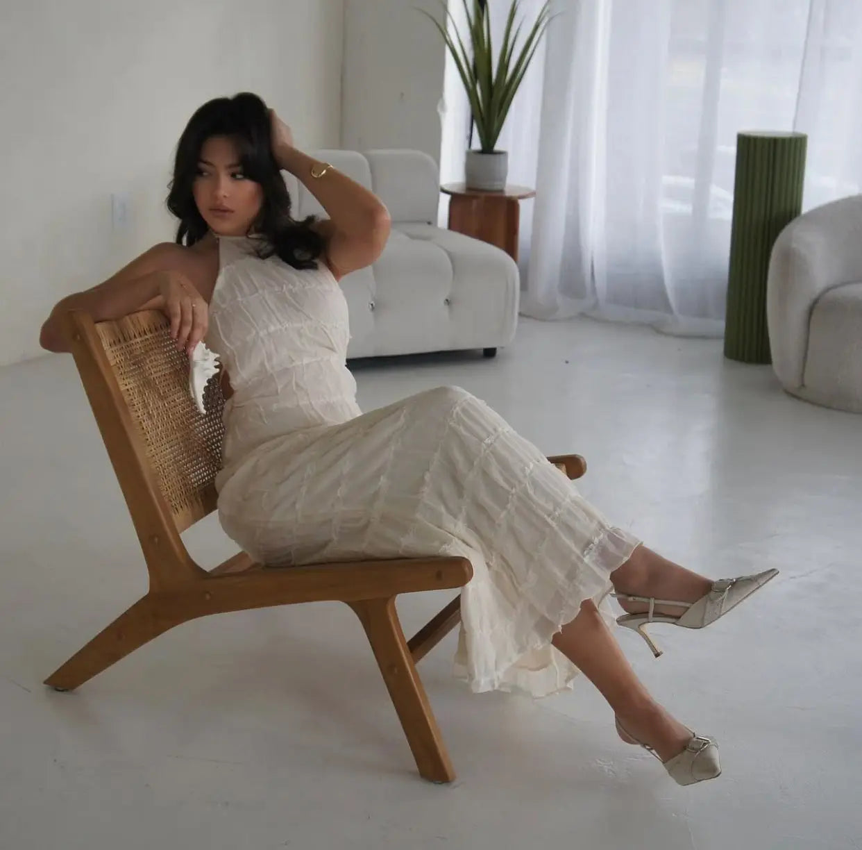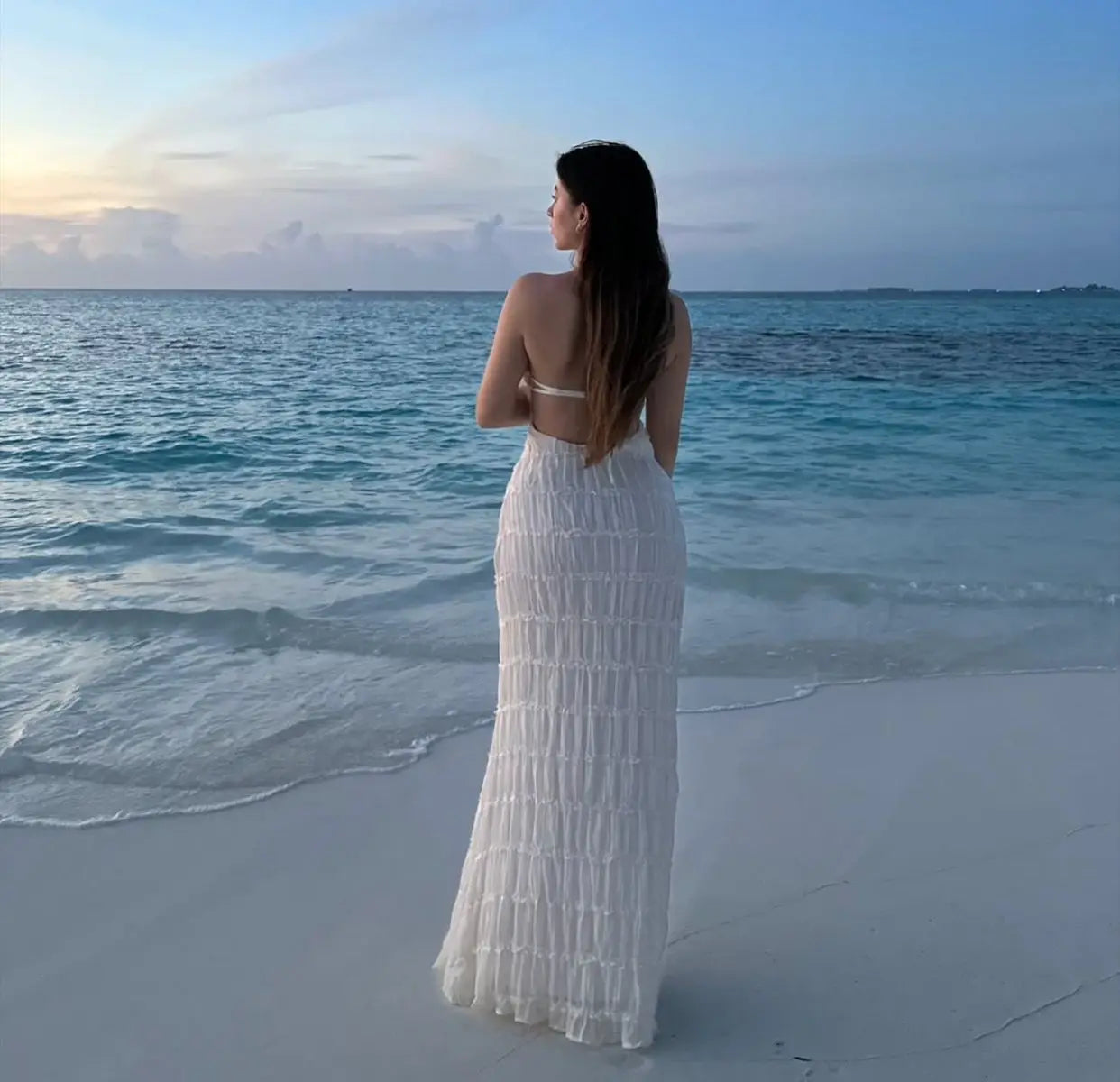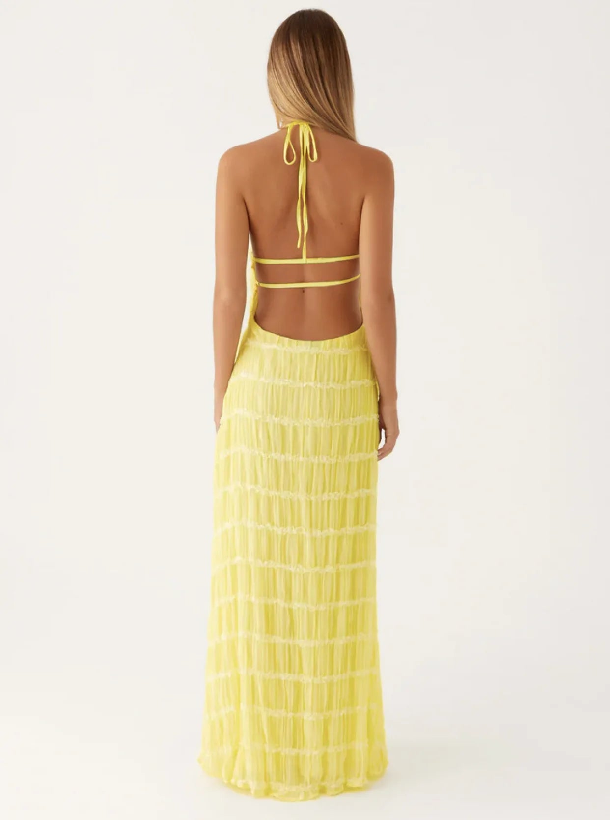 Women's Summer Backless Frill Hem Maxi Outfit Sleeveless Halter Bandage Beach Dress