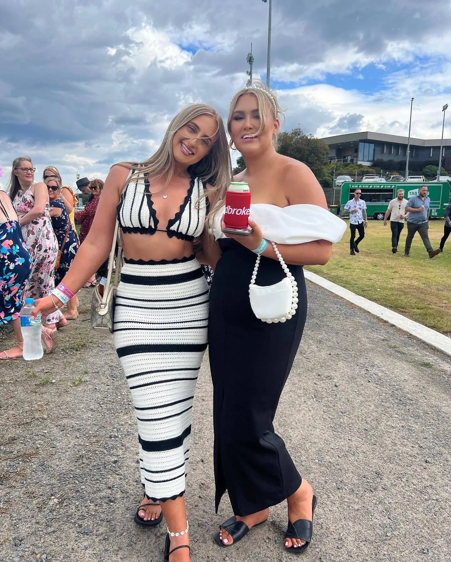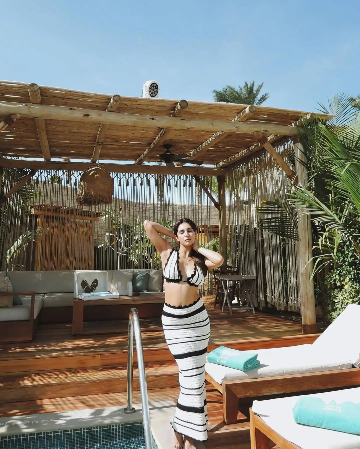 Women's Summer Beachwear Stripe Dress Set -Deep V Neck Knitted Top and Skirt 2 Piece Sets