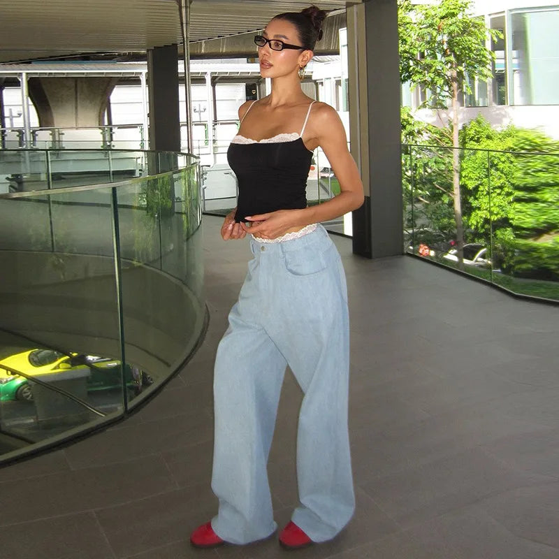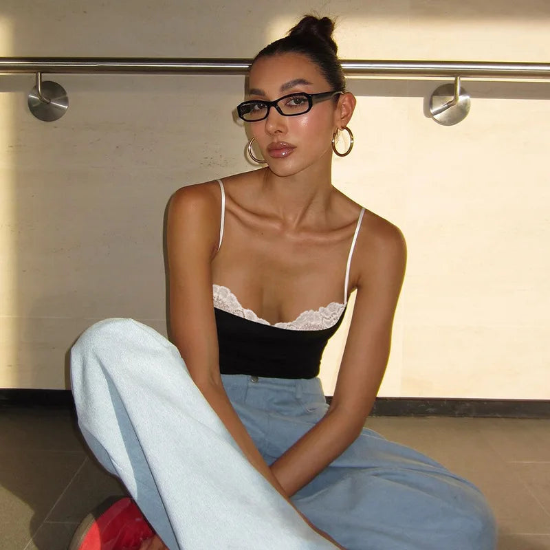 Women's Summer Lace Trim Camisole Top Party Outfits Backless Streetwear Sleeveless Crop Top Coquette