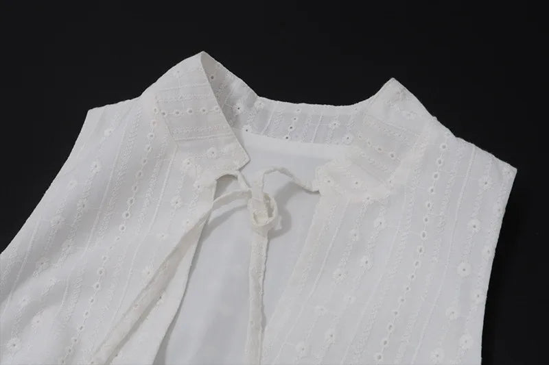 Women's Summer Tie Front Tops Button White Cut Out Sleeveless Cropped Top