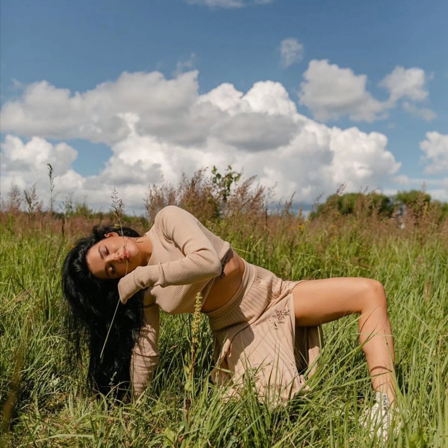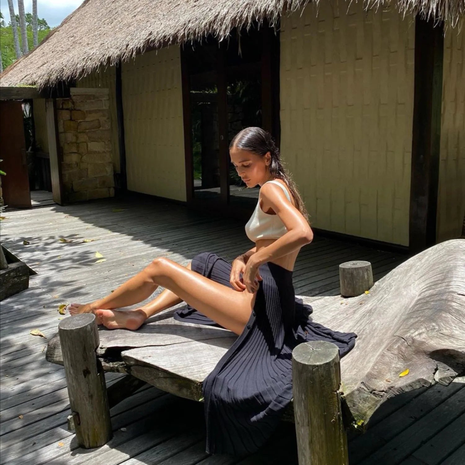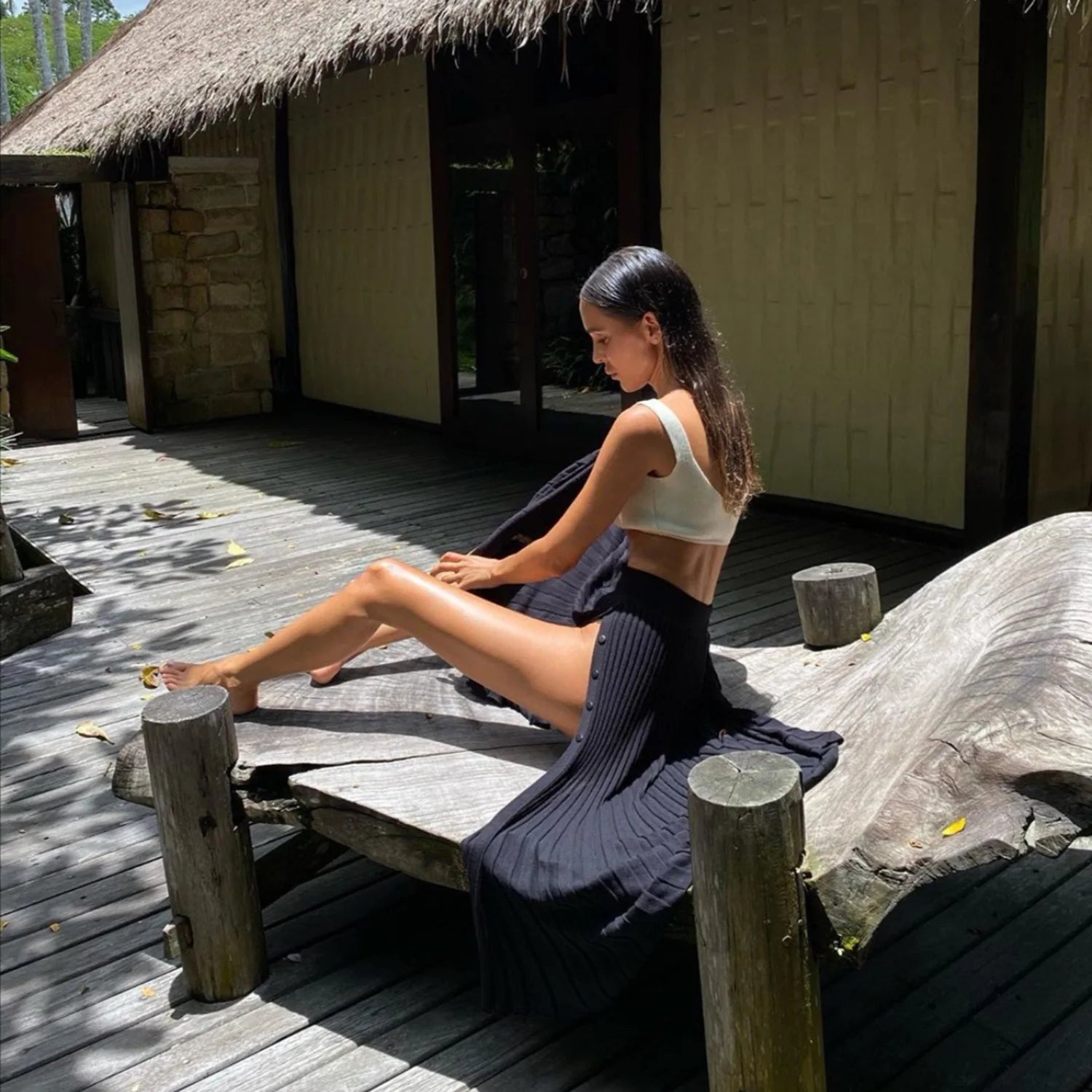 Women's Sweater Cropped Top Midi Skirt Two Piece Set - Matching Set Outfit Button Up Split Skirt