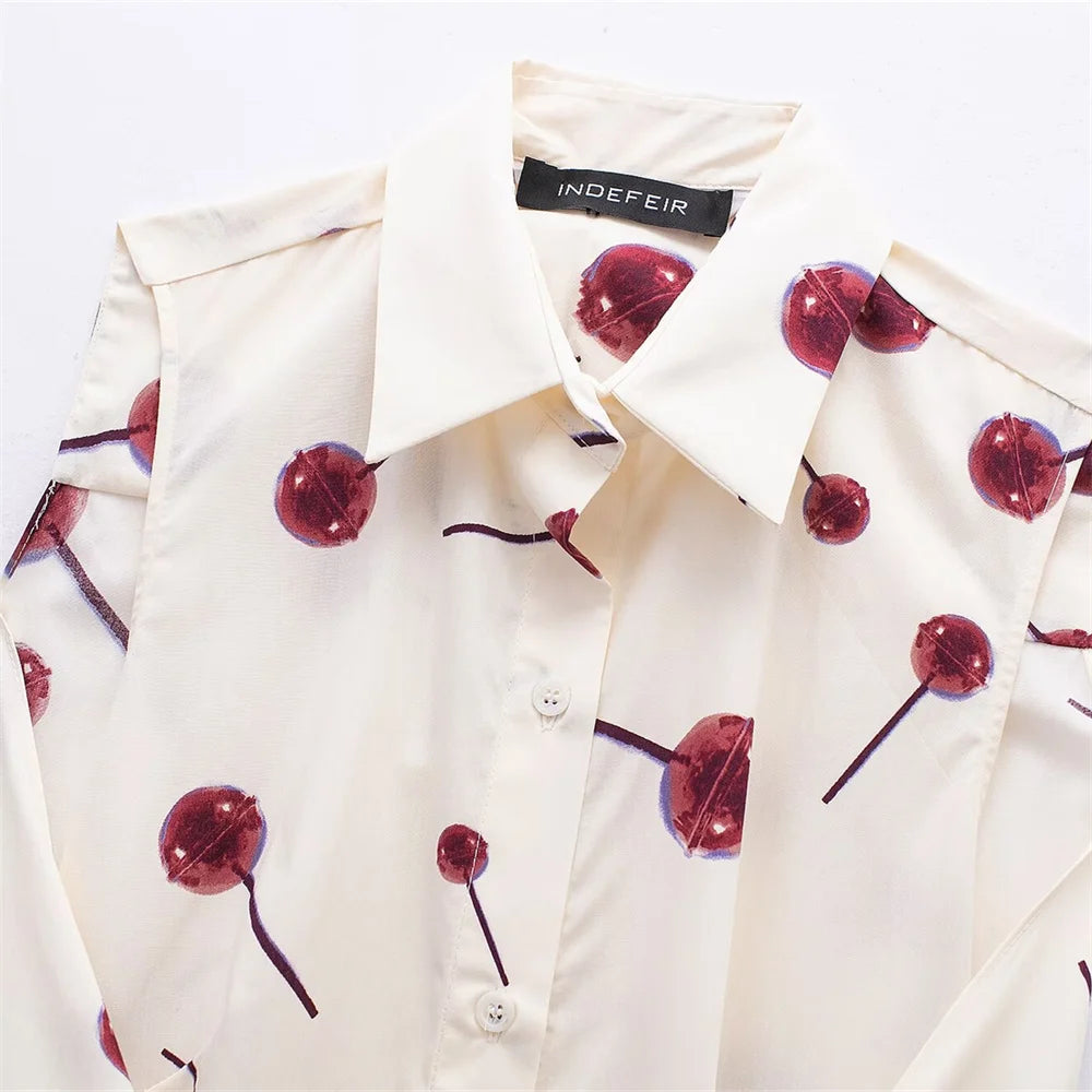 Women's Temperament Casual Printed Poplin Shirt Style Dress