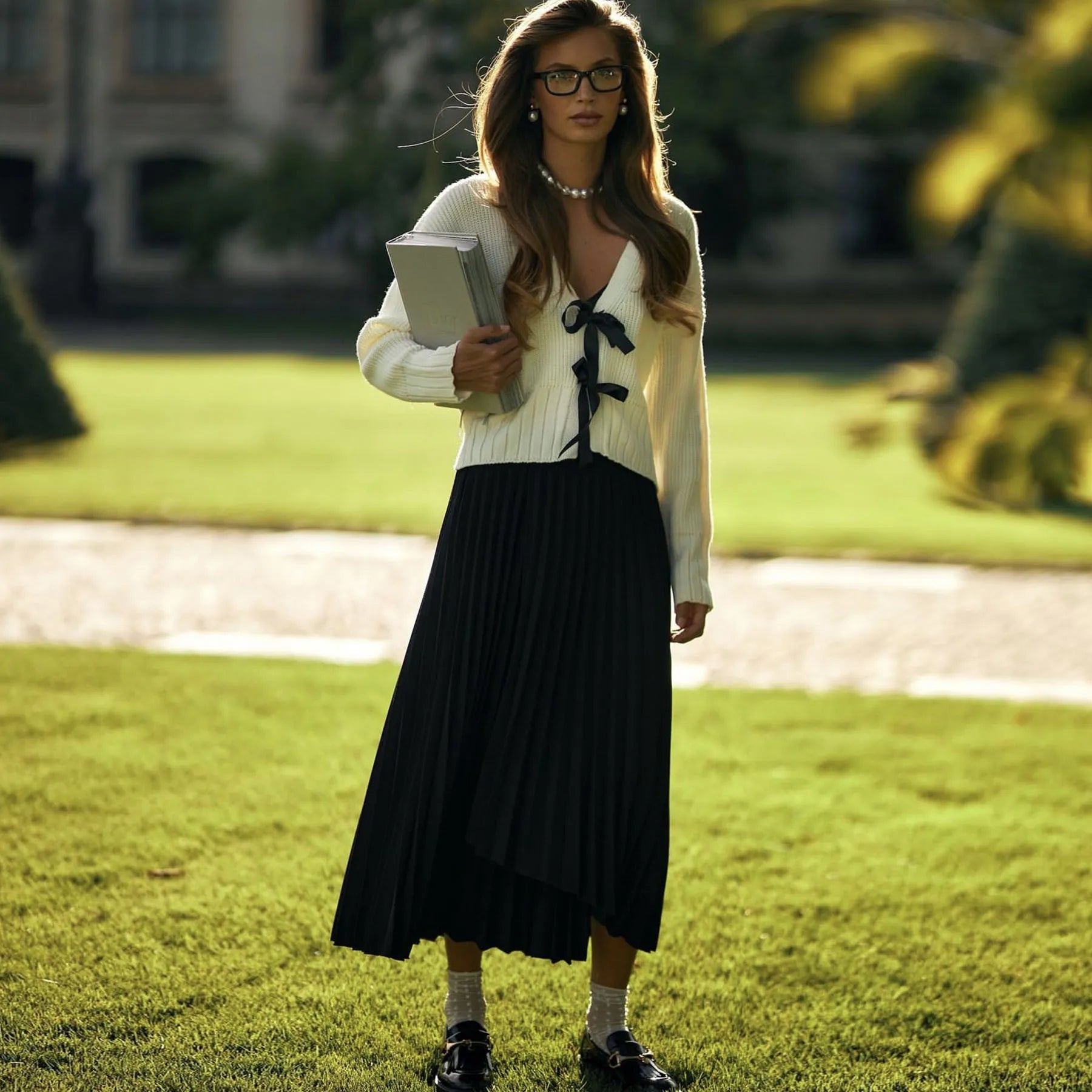Women's Tie Front Bow Detail Long Sleeve Cardigan Knitted Sweater