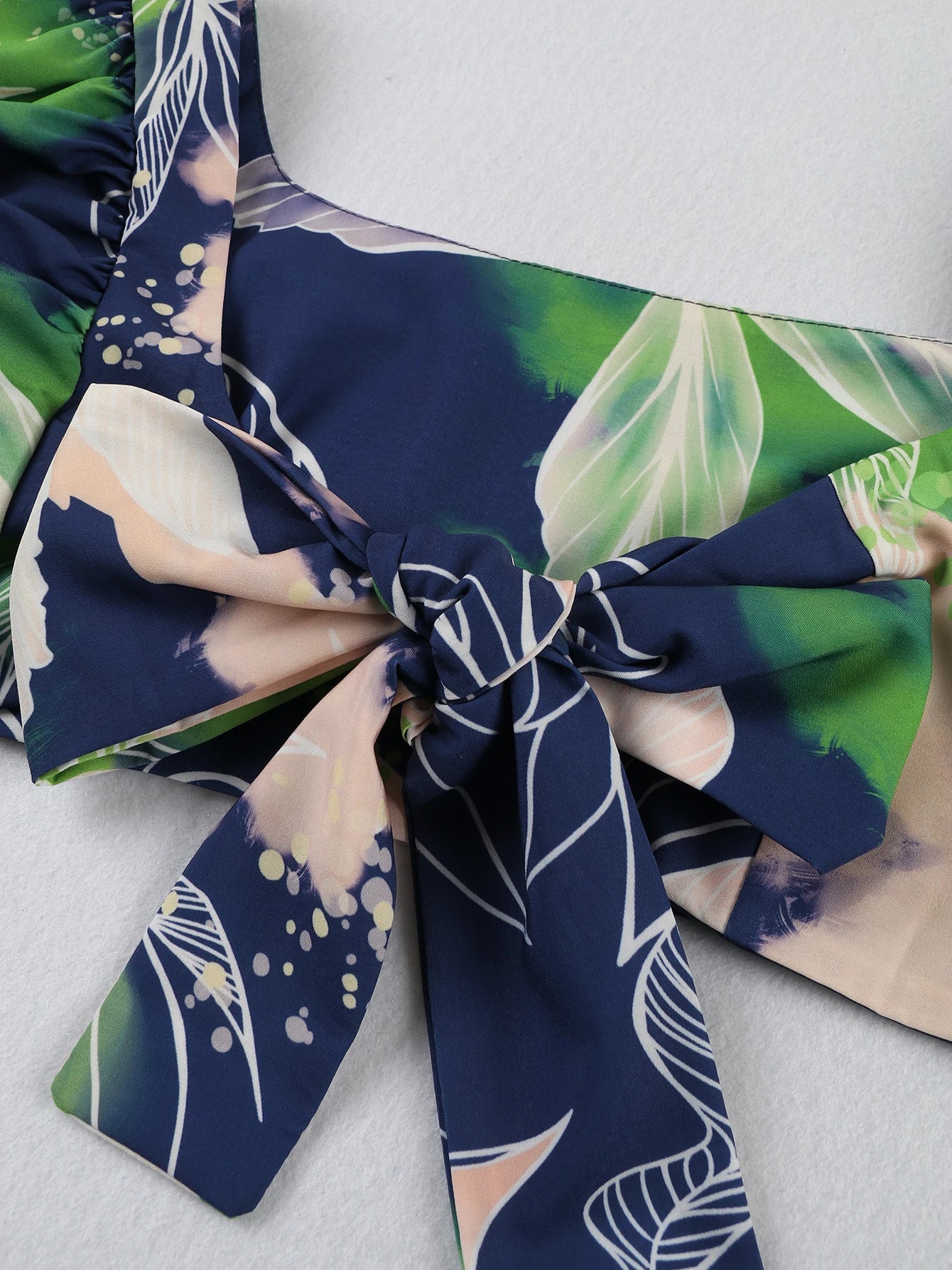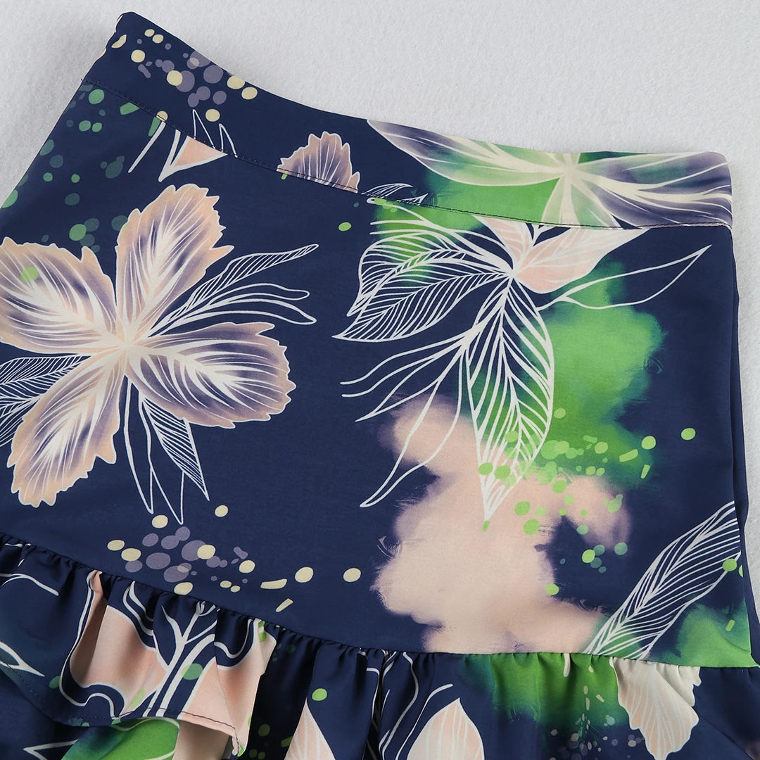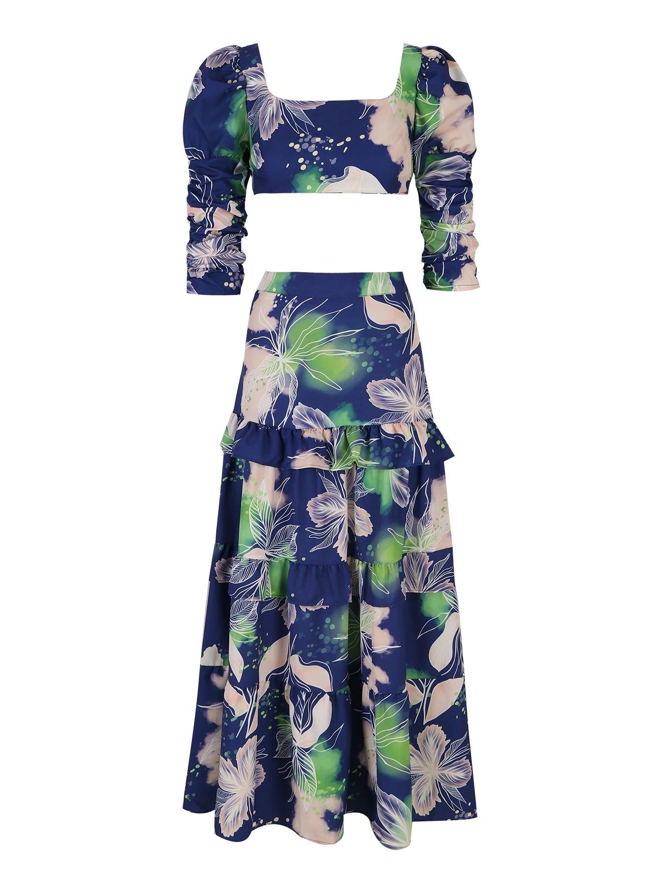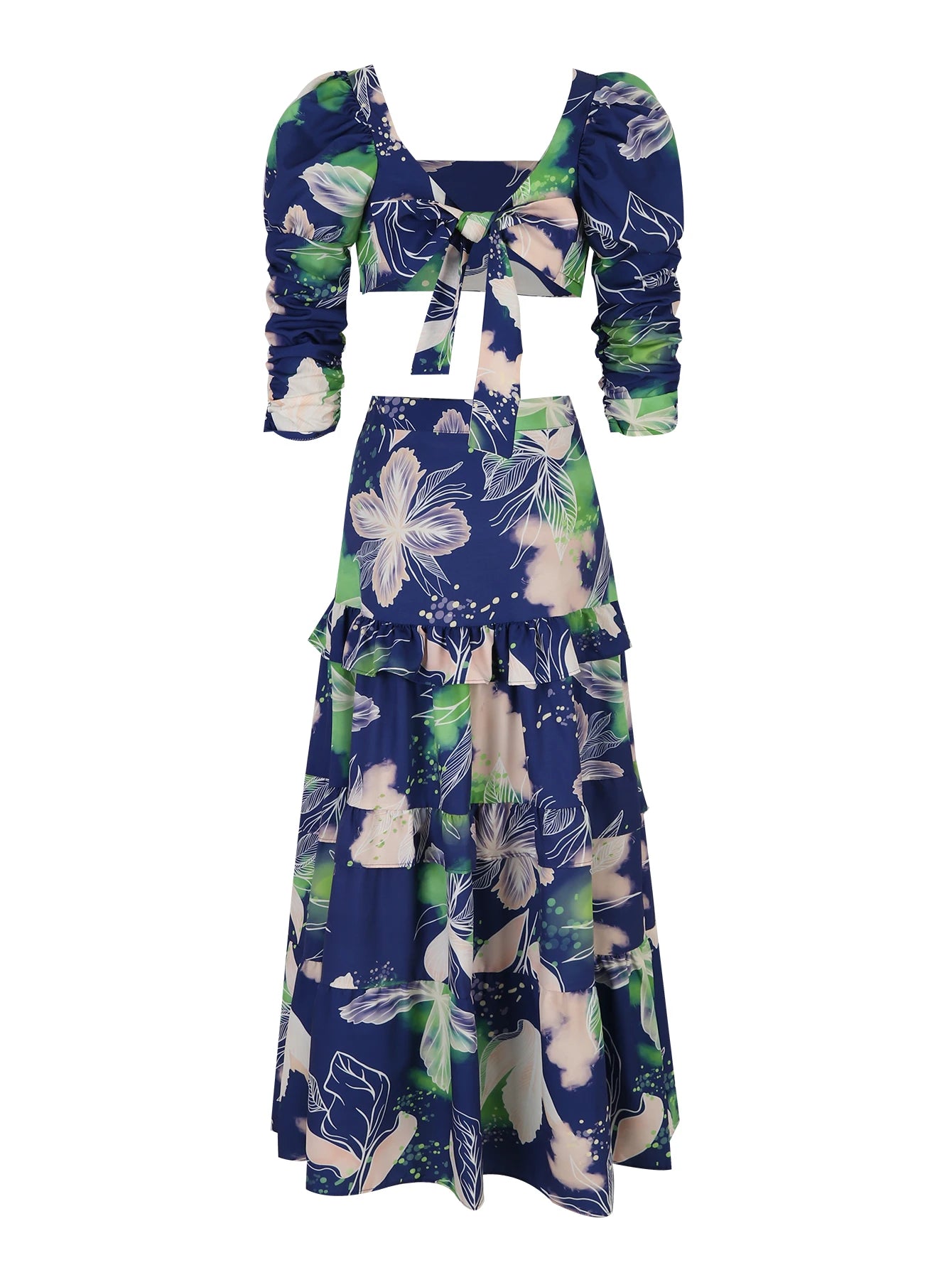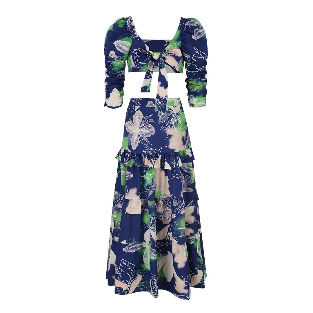 Women's Two-piece Skirt Set Long Sleeve Top and High Waist Chic Beach Dress