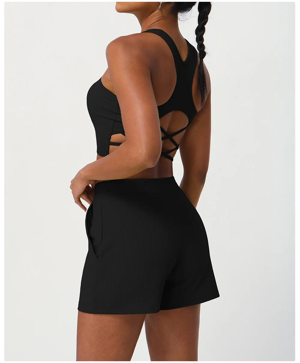 Women's Two Pieces Fitness Yoga Set Gym Breathable Quick Dry Running Short Sportswear Workout Set