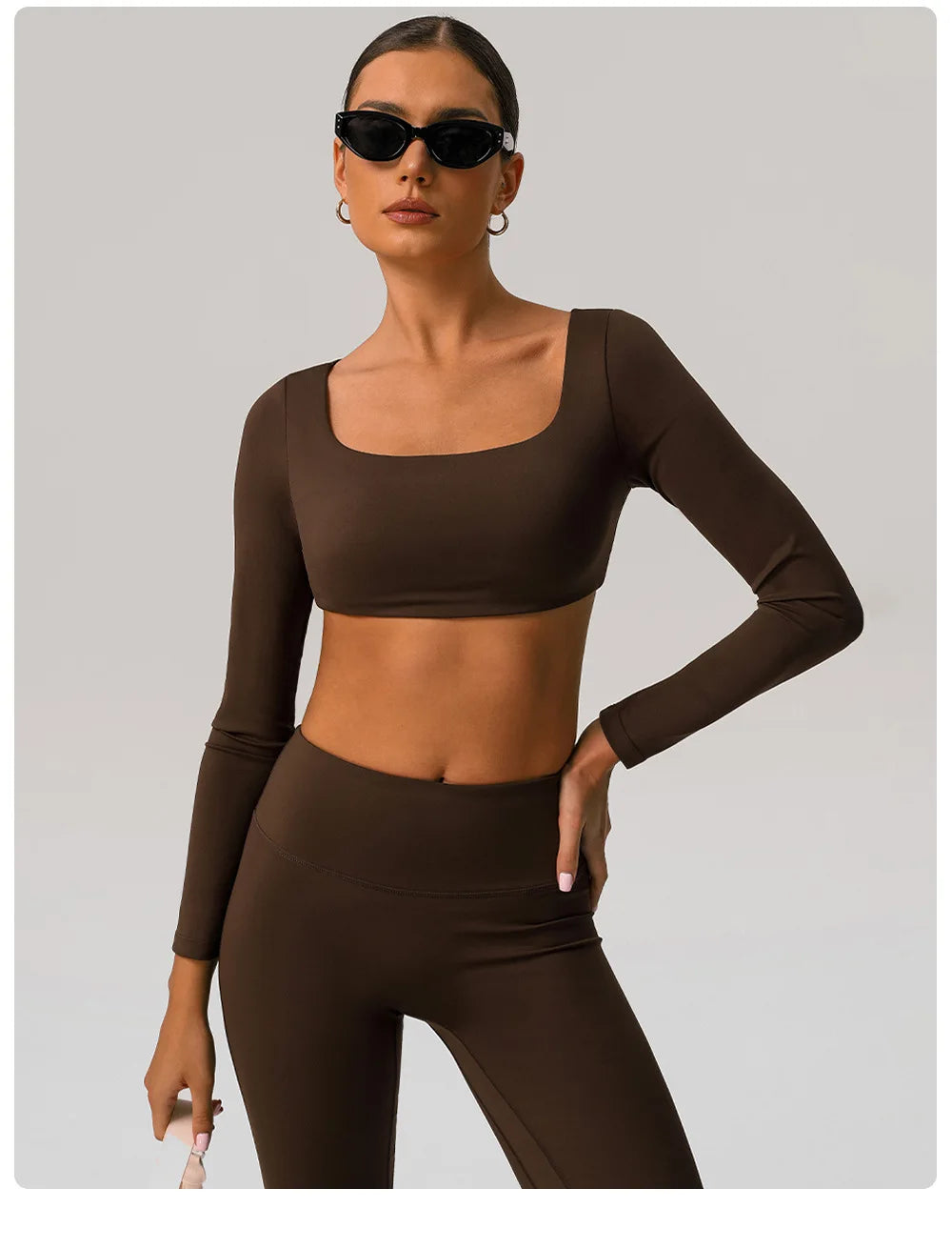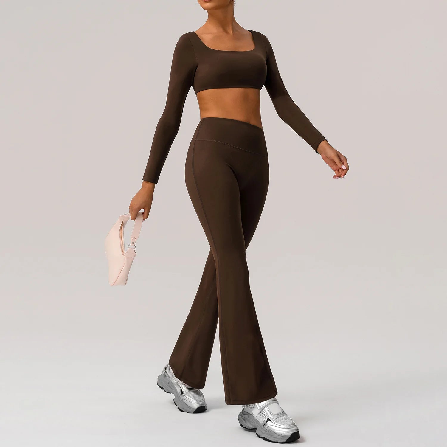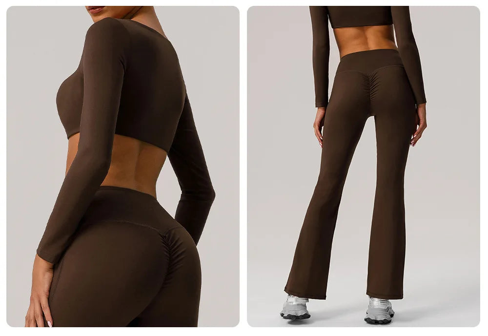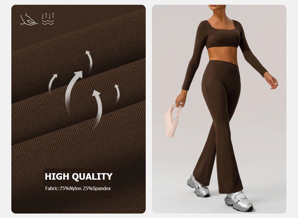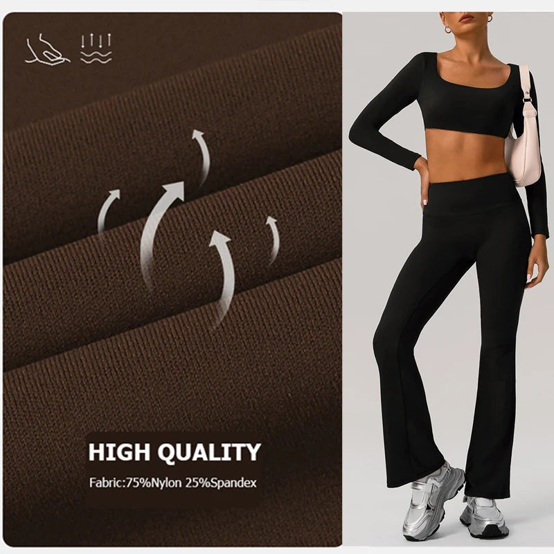 Women's Two Pieces Fitness Yoga Set Solid Colour Long Sleeve Gym Suit Breathable Quick Dry Running Sportswear Outfit