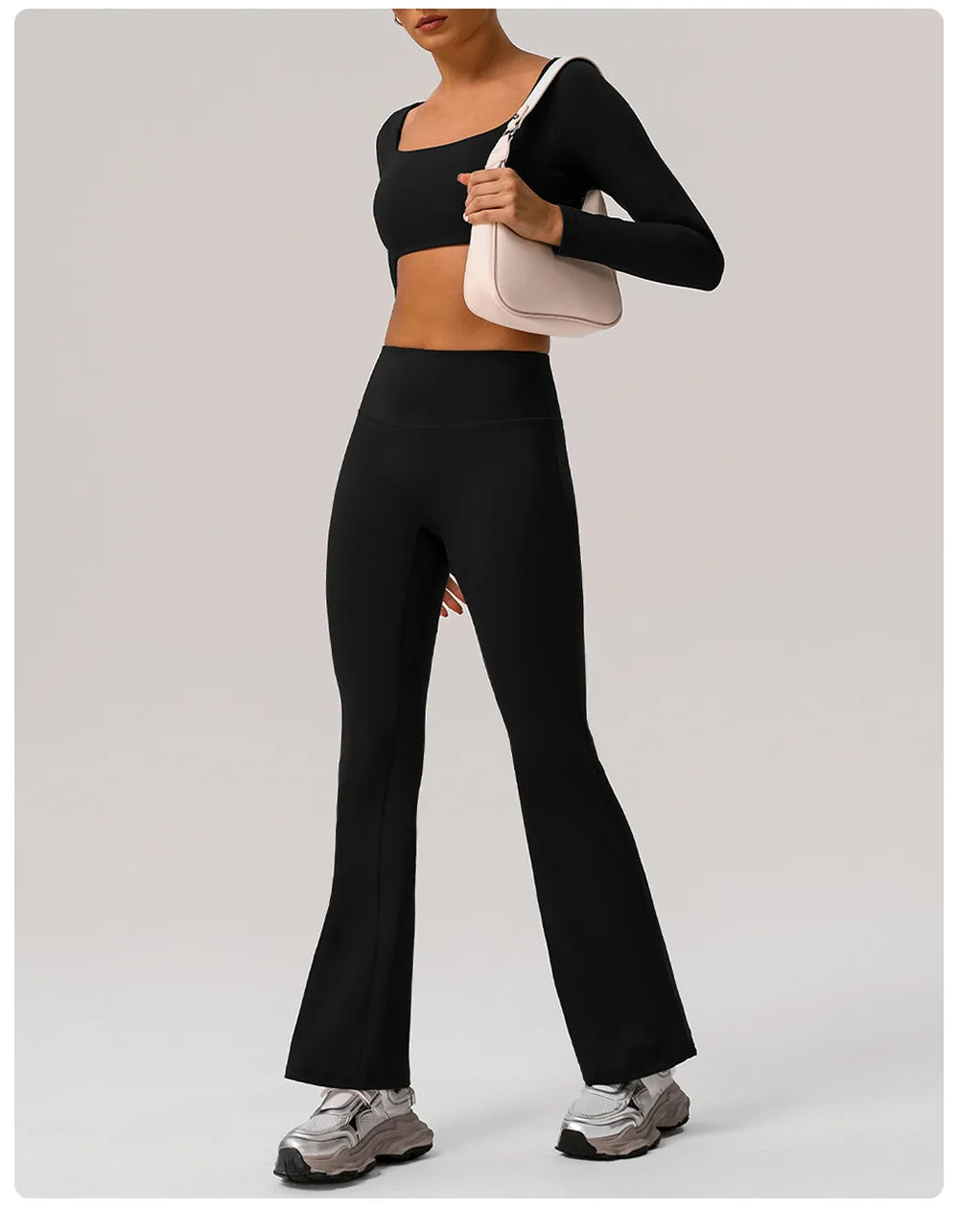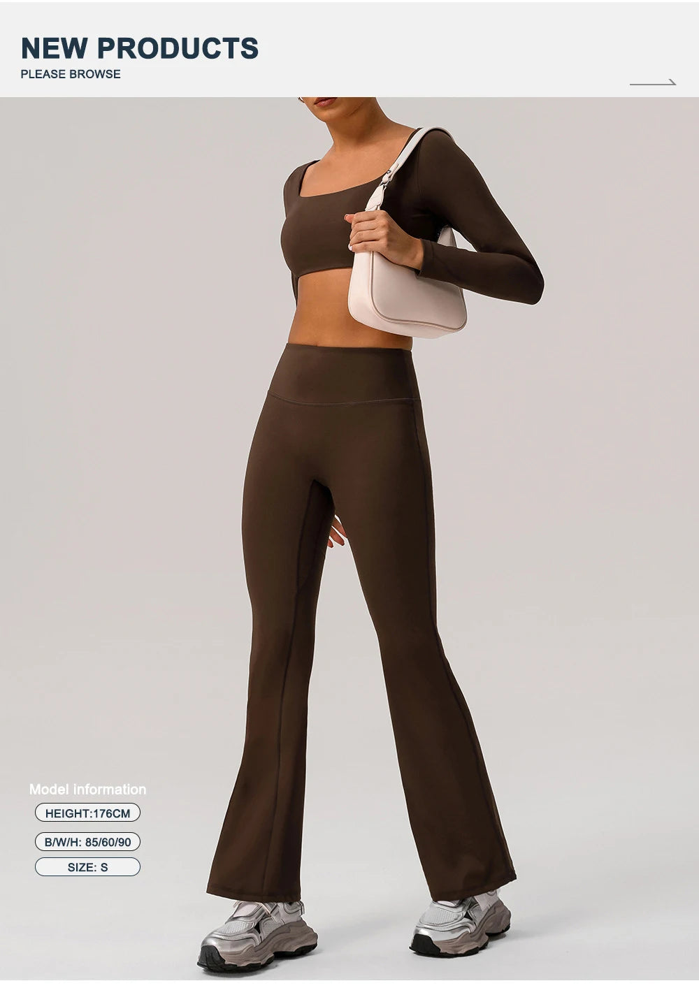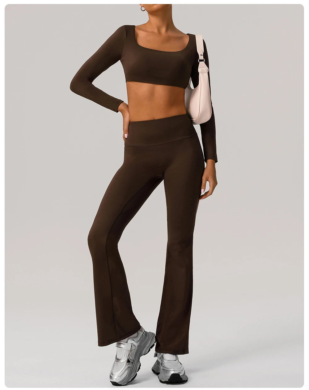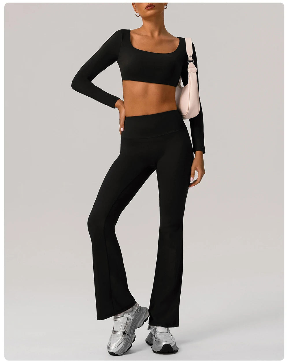 Women's Two Pieces Fitness Yoga Set Solid Colour Long Sleeve Gym Suit Breathable Quick Dry Running Sportswear Outfit