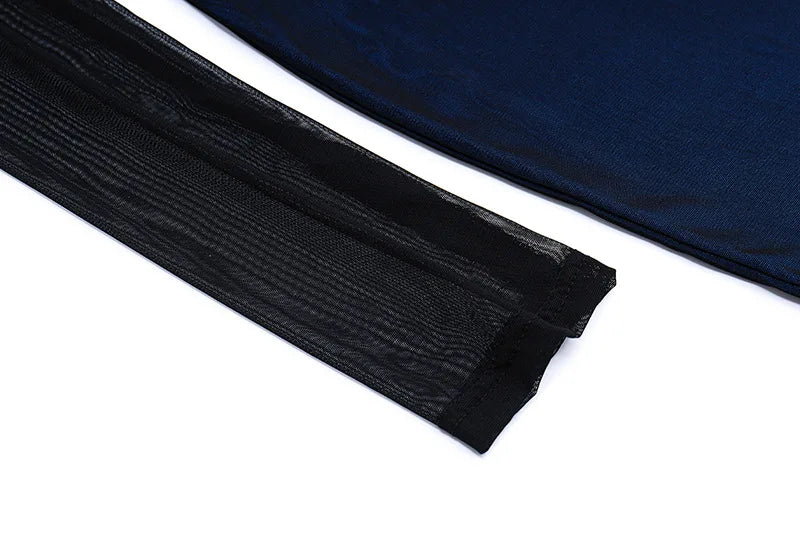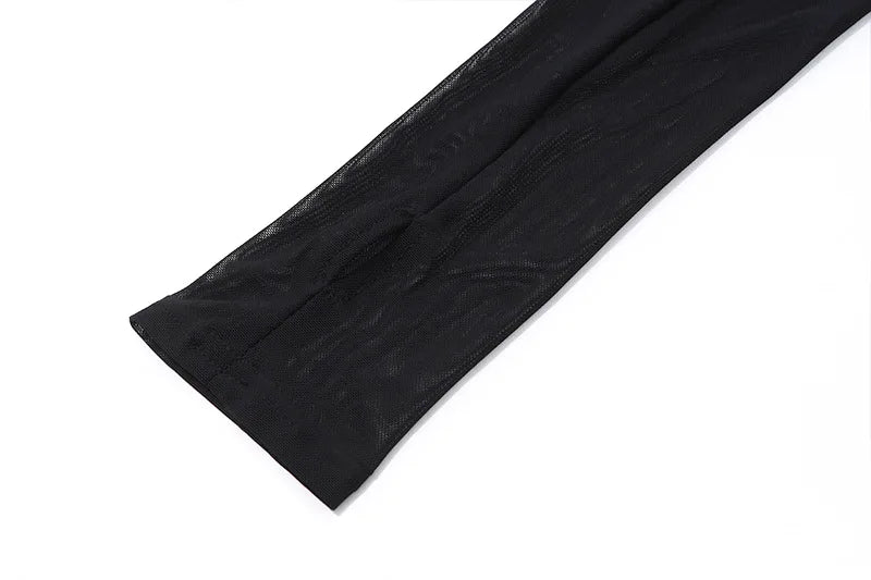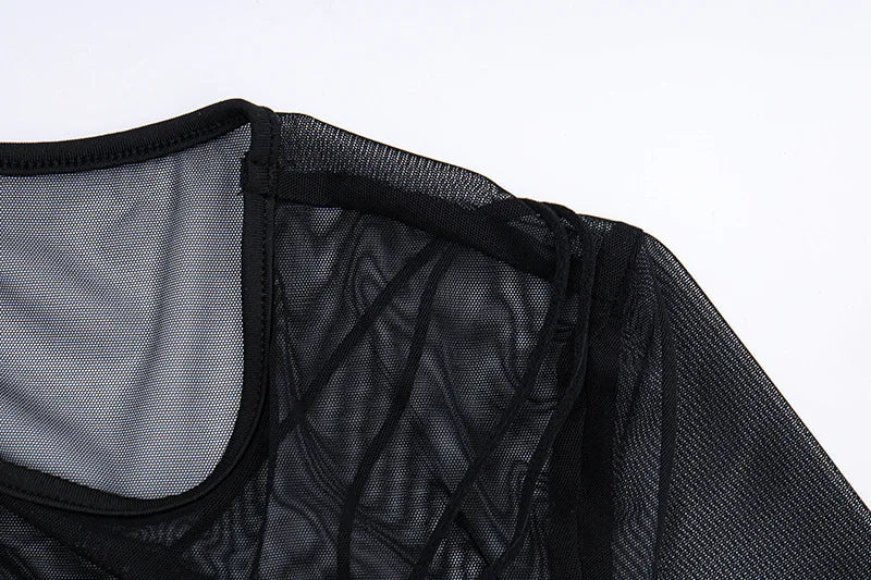 Women's Vintage Mesh Sheer Long Sleeve Mini Dress Party Bodycon Dress