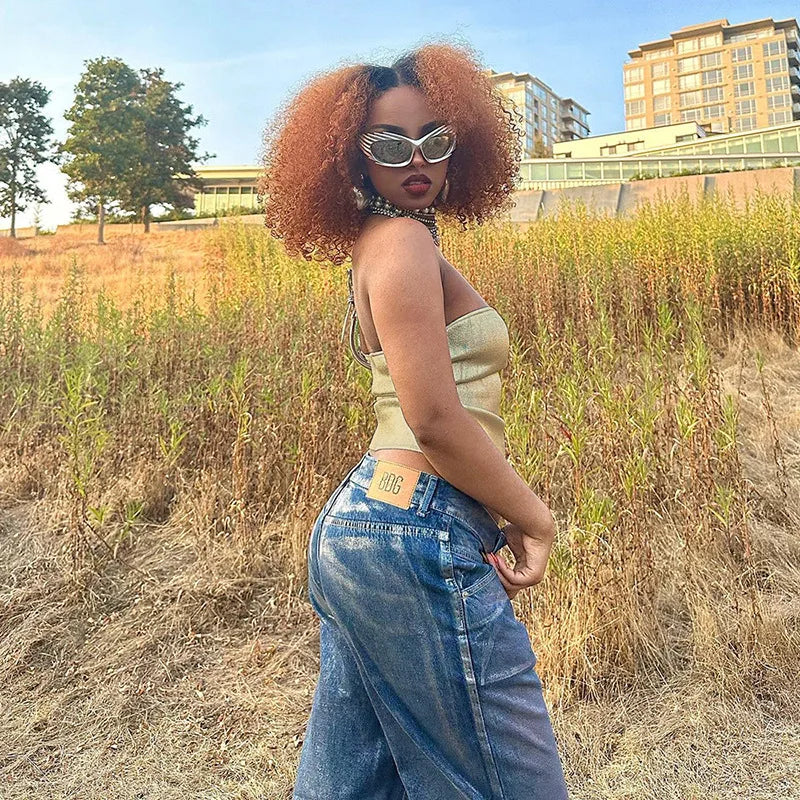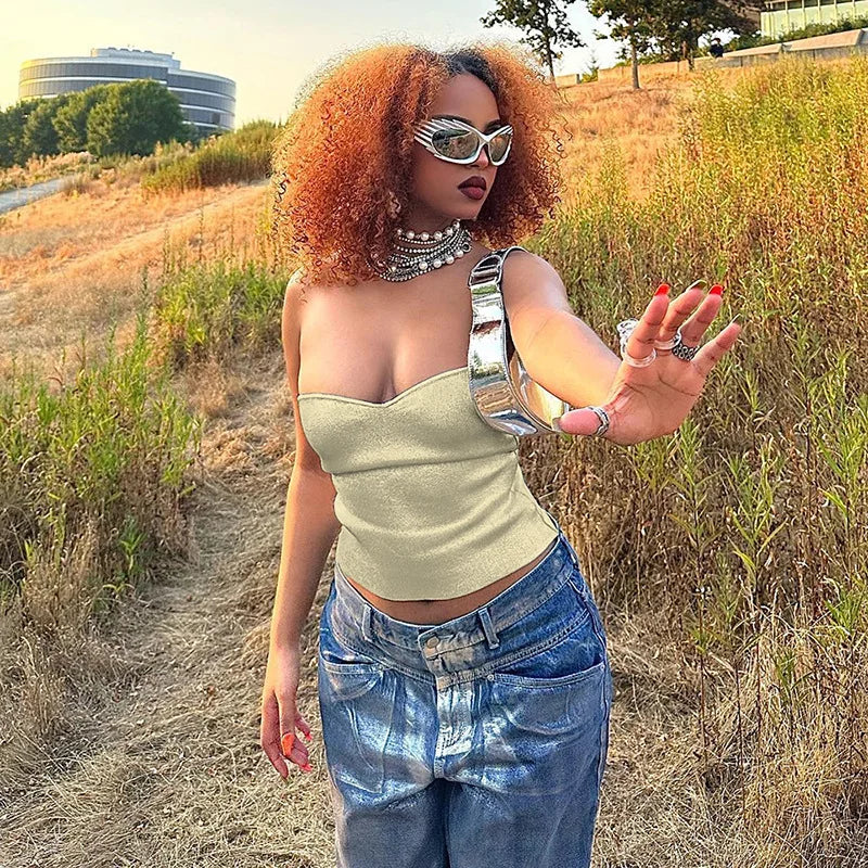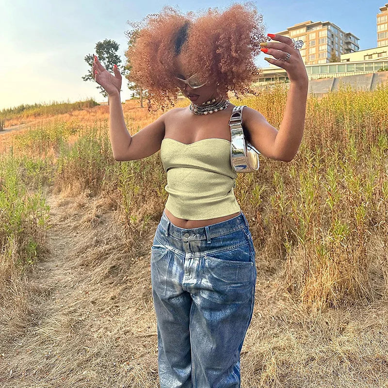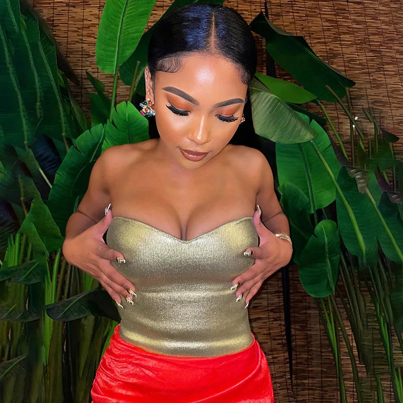 Women's Vintage Strapless Gold Crop Top - Tube Vest Backless Bustier Top