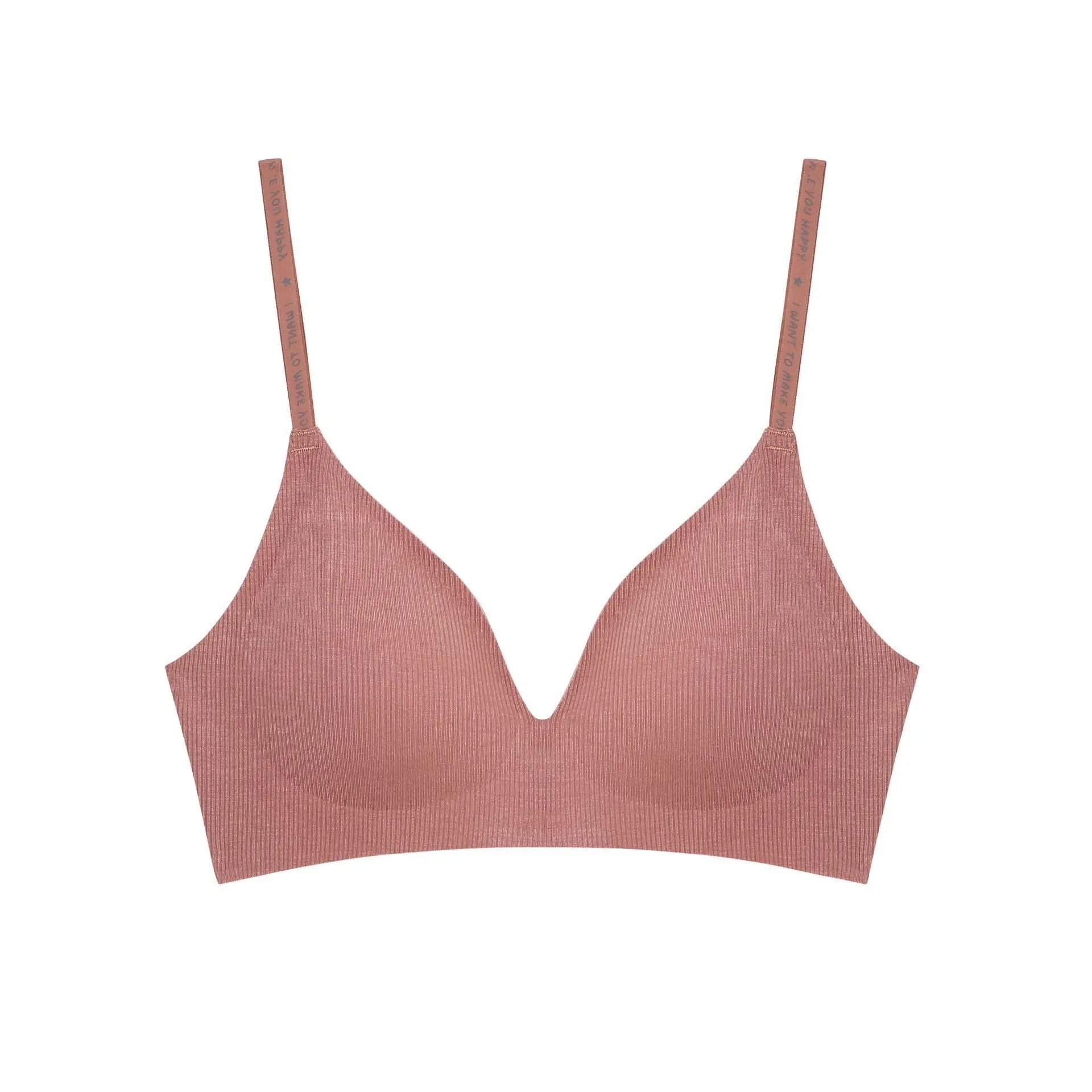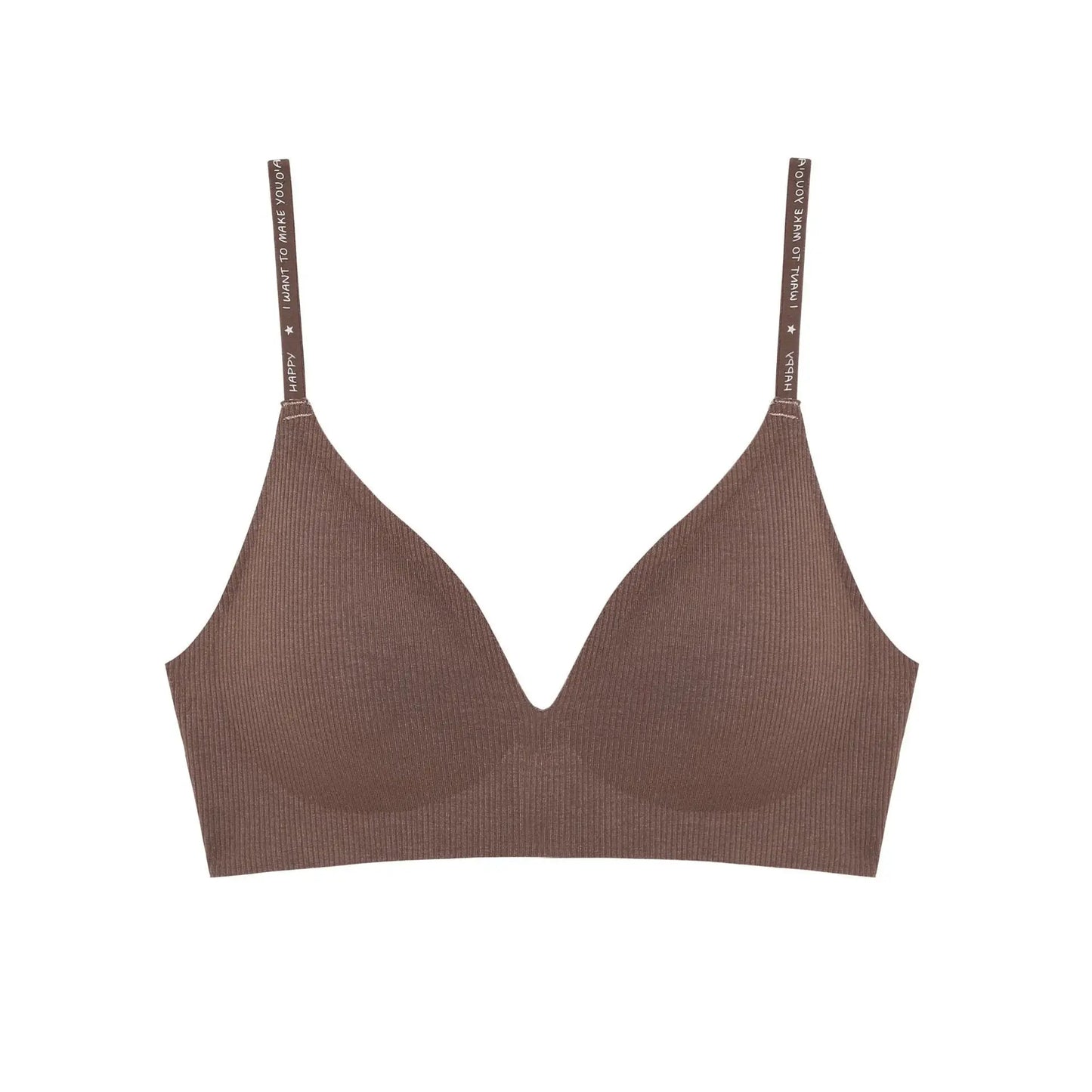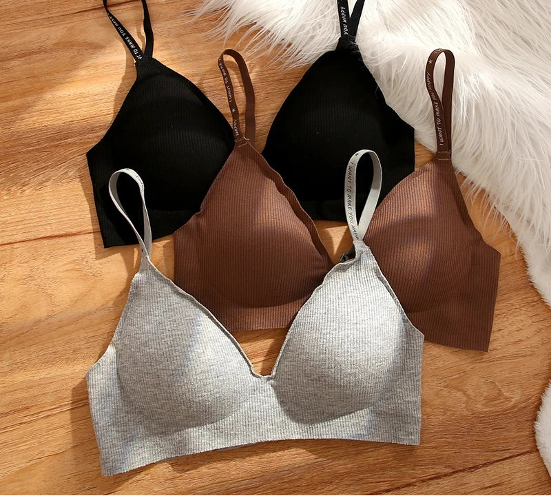 Women's Wireless Bra Deep V Padded Bralette Stripe Knitting Bra